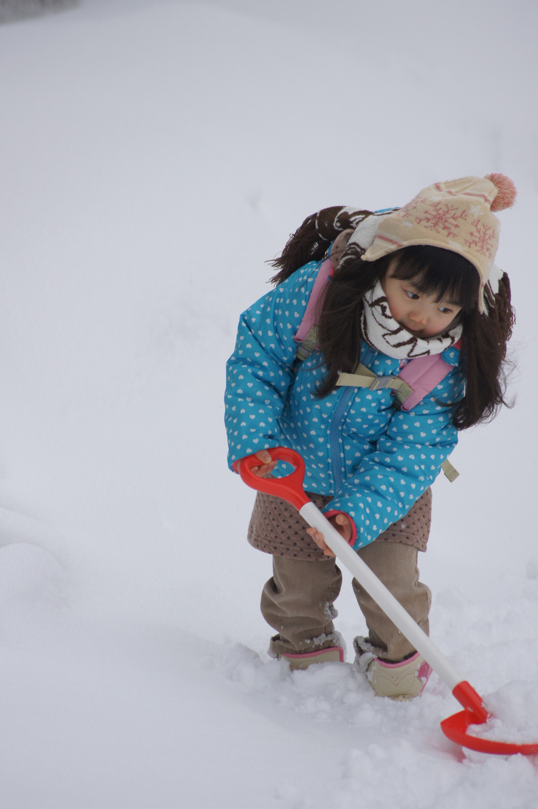 孫が雪かきを手伝ってくれました。 雪が珍しいんですね。一生懸命頑張りました。
