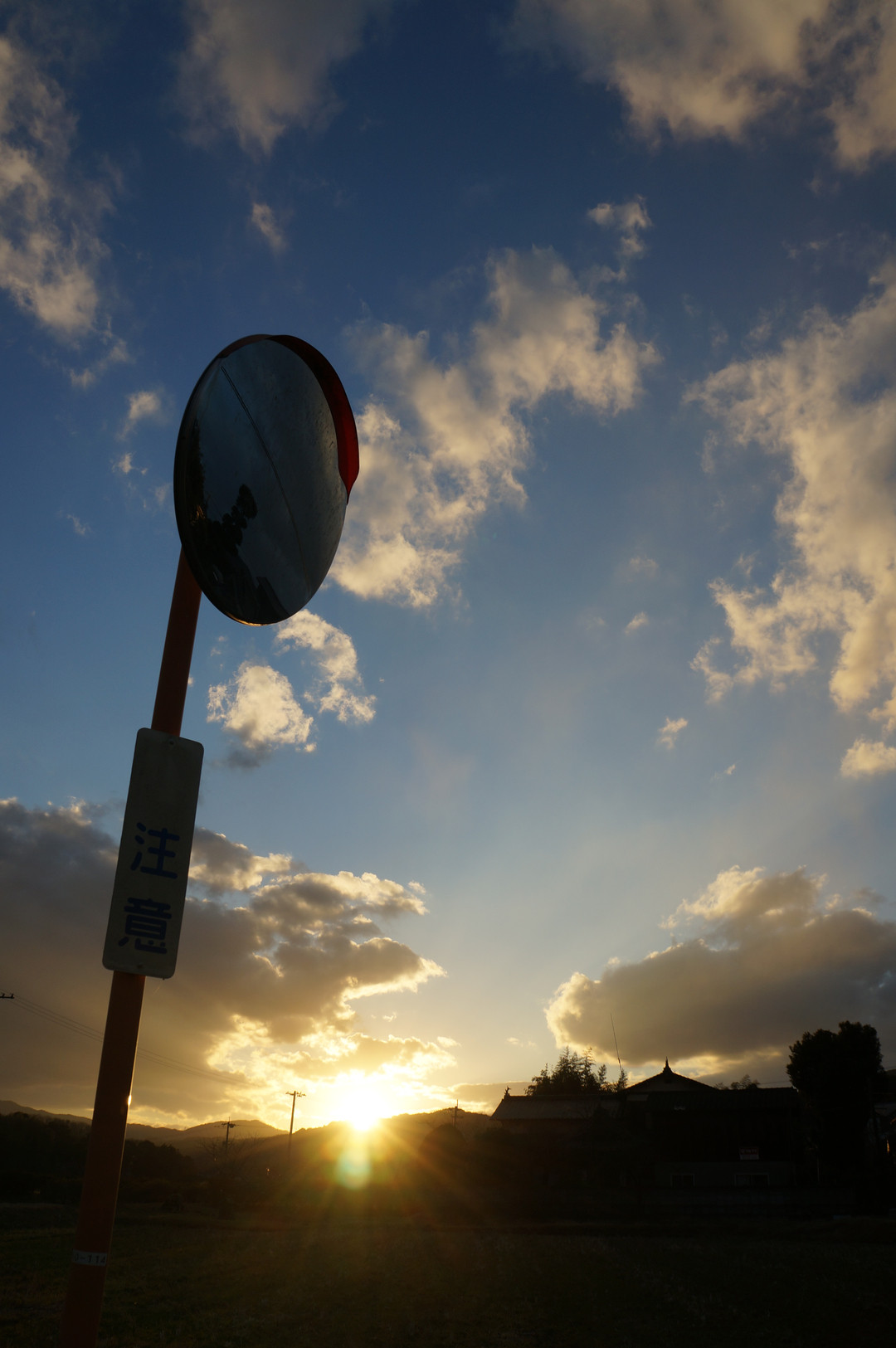 夕日をバックにカーブミラー。 この構図はお気に入りです