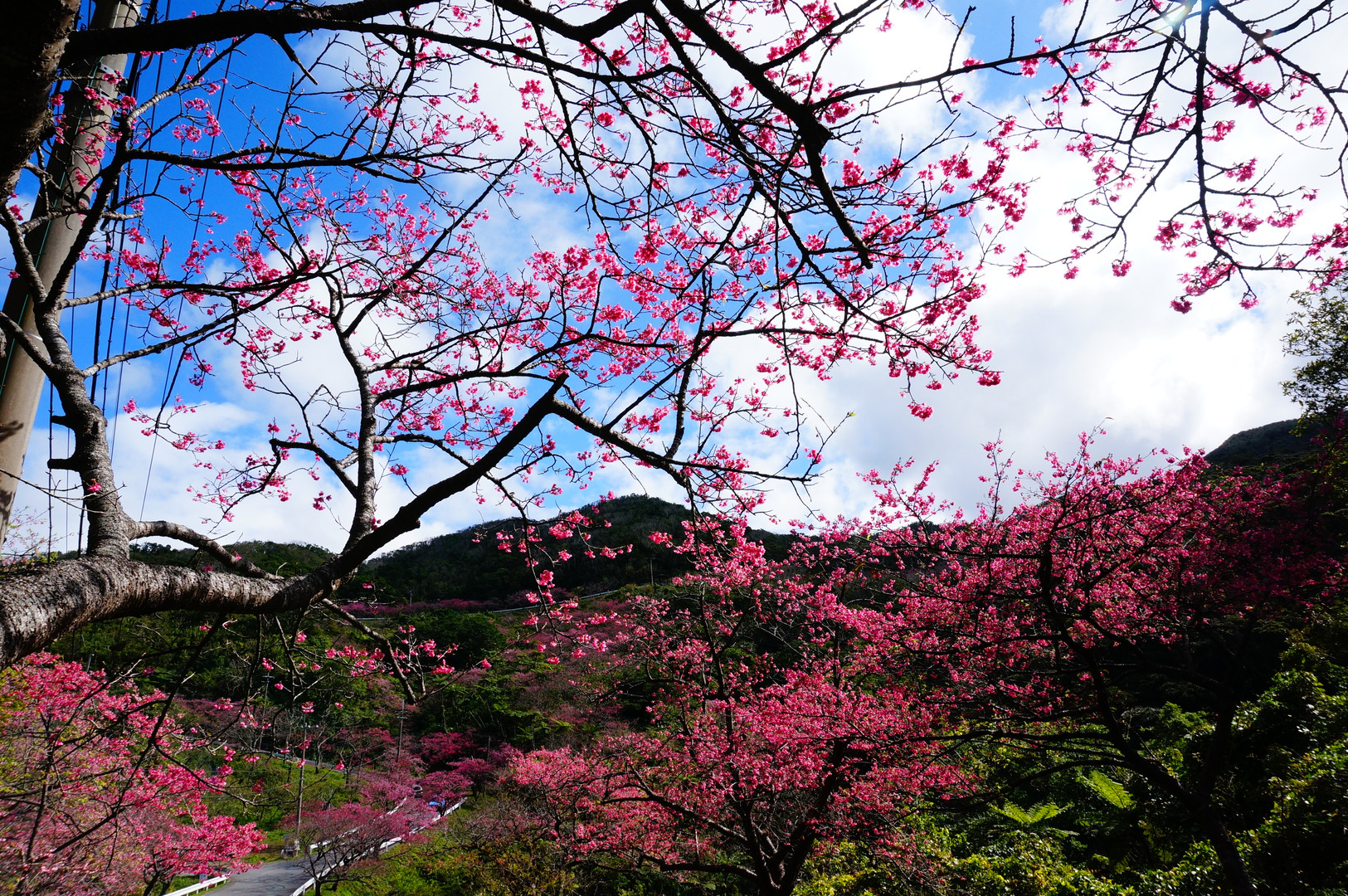 沖縄は桜のシーズンです。 八重岳の桜祭り。 うすピンクの桜ではなく、 ショッキングピンクの桜です。 緑との共生が見事でした。