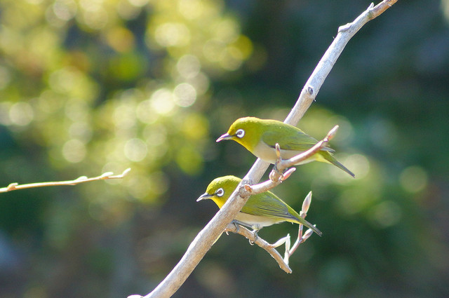 二階のベランダから庭に遊びに来るメジロさんを撮りました。 遊びに来てほしくて枝にみかんを用意してお招きしました。 本当にすぐ飛んできてくれたのでびっくりです。 ひよちゃんに見つかる前に急いで食べないと…