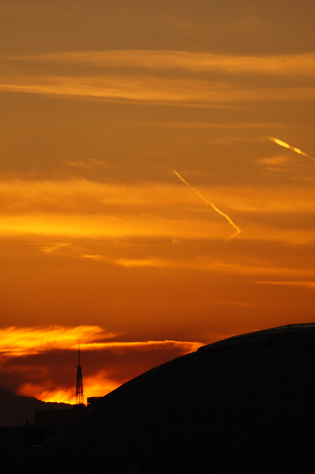 沈む夕日にテレビ塔が燃えていました!