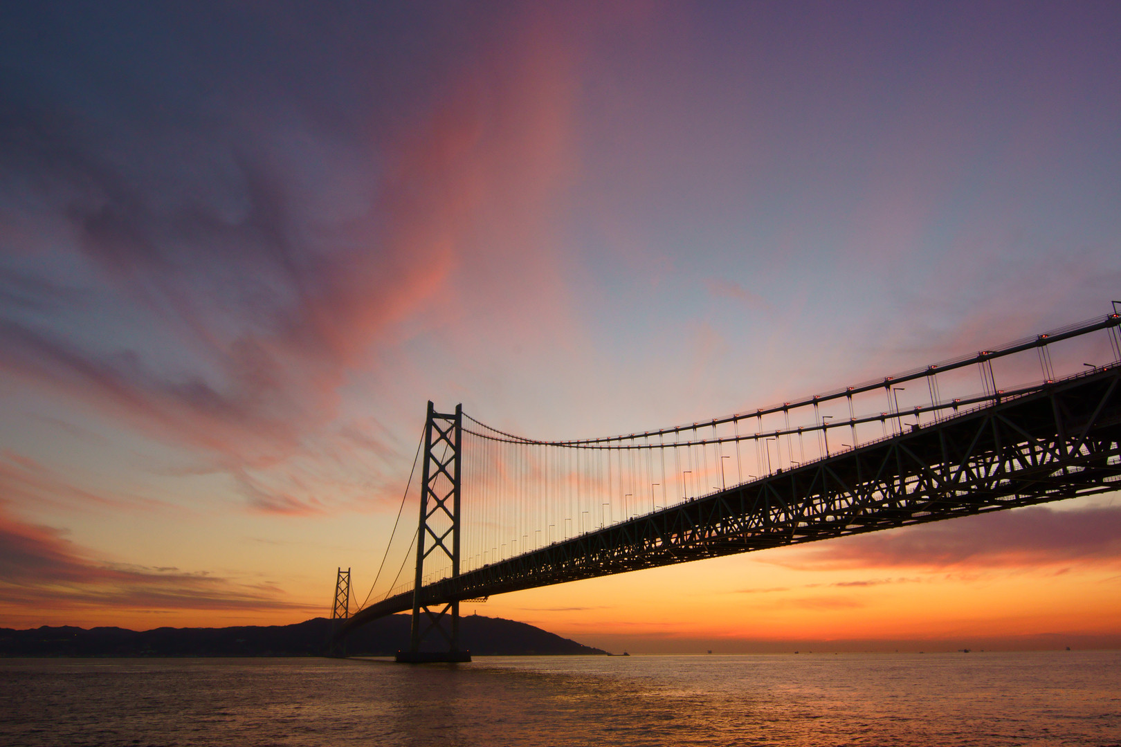 久しぶりの明石海峡。 天気も暖かく、最高の夕焼けでした。