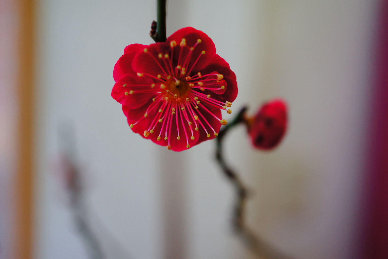 紅梅も一輪咲き始めました。 ほんの少し春の息吹を感じます。