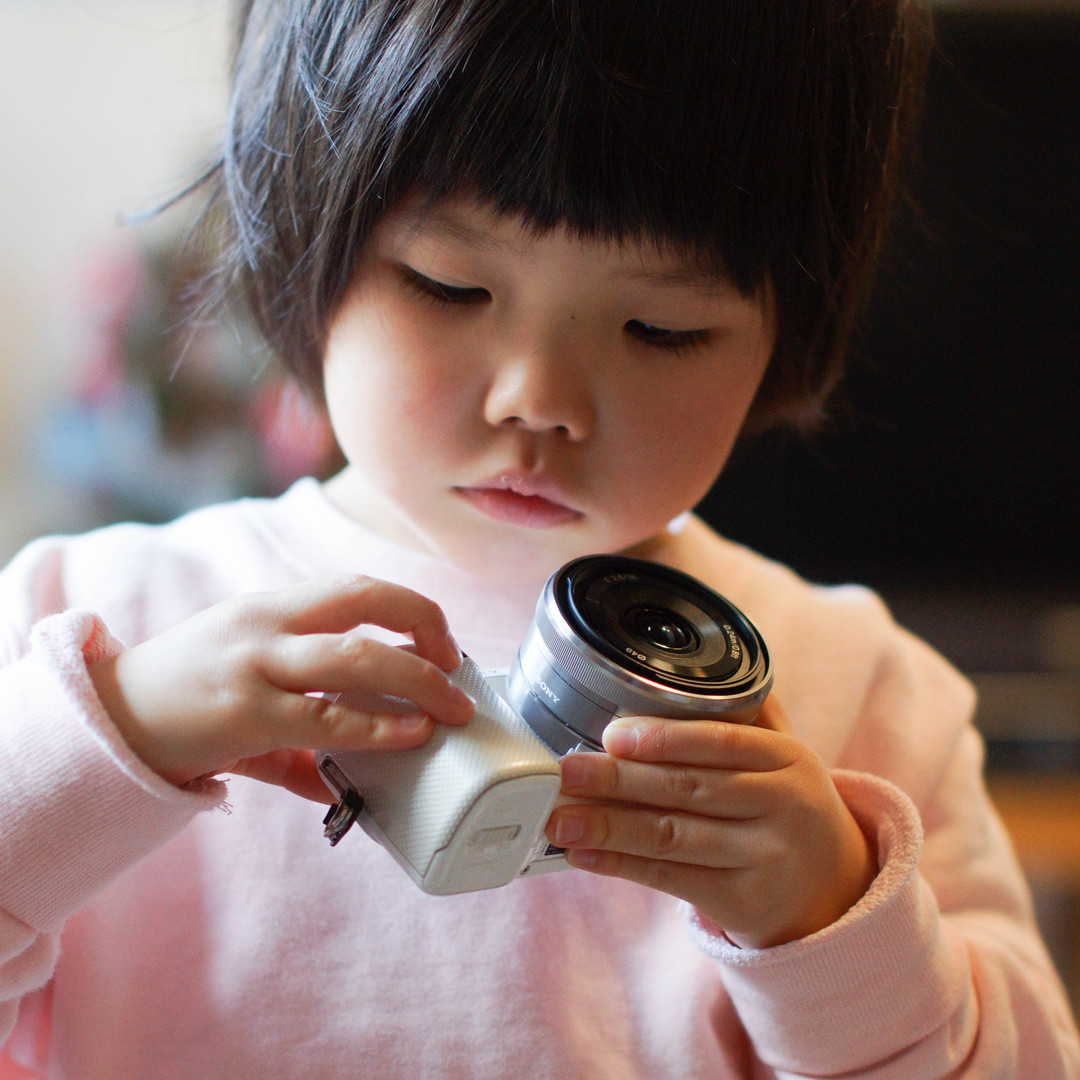 初めてカメラを持たせた日。 娘も写真を撮りたがるので まずは軽いNEX-5Nと16mmで練習させました。