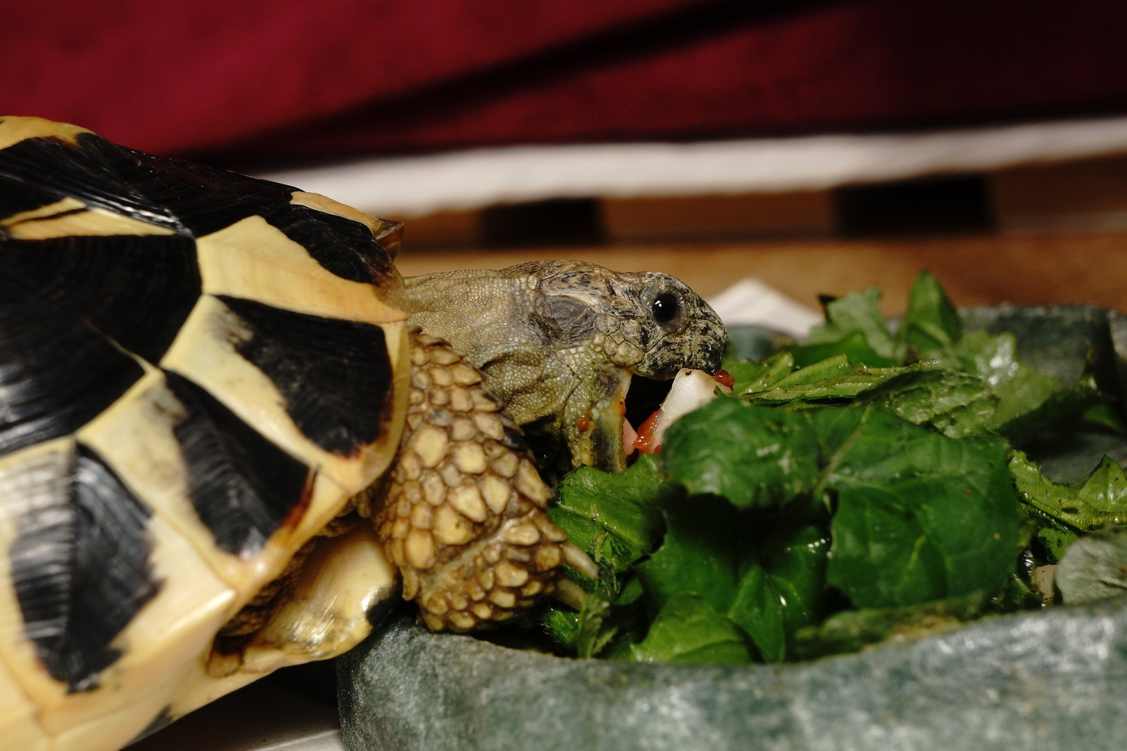 好物のトッピング(トマト)を見つけてかぶりつく アゴはずれるでー
