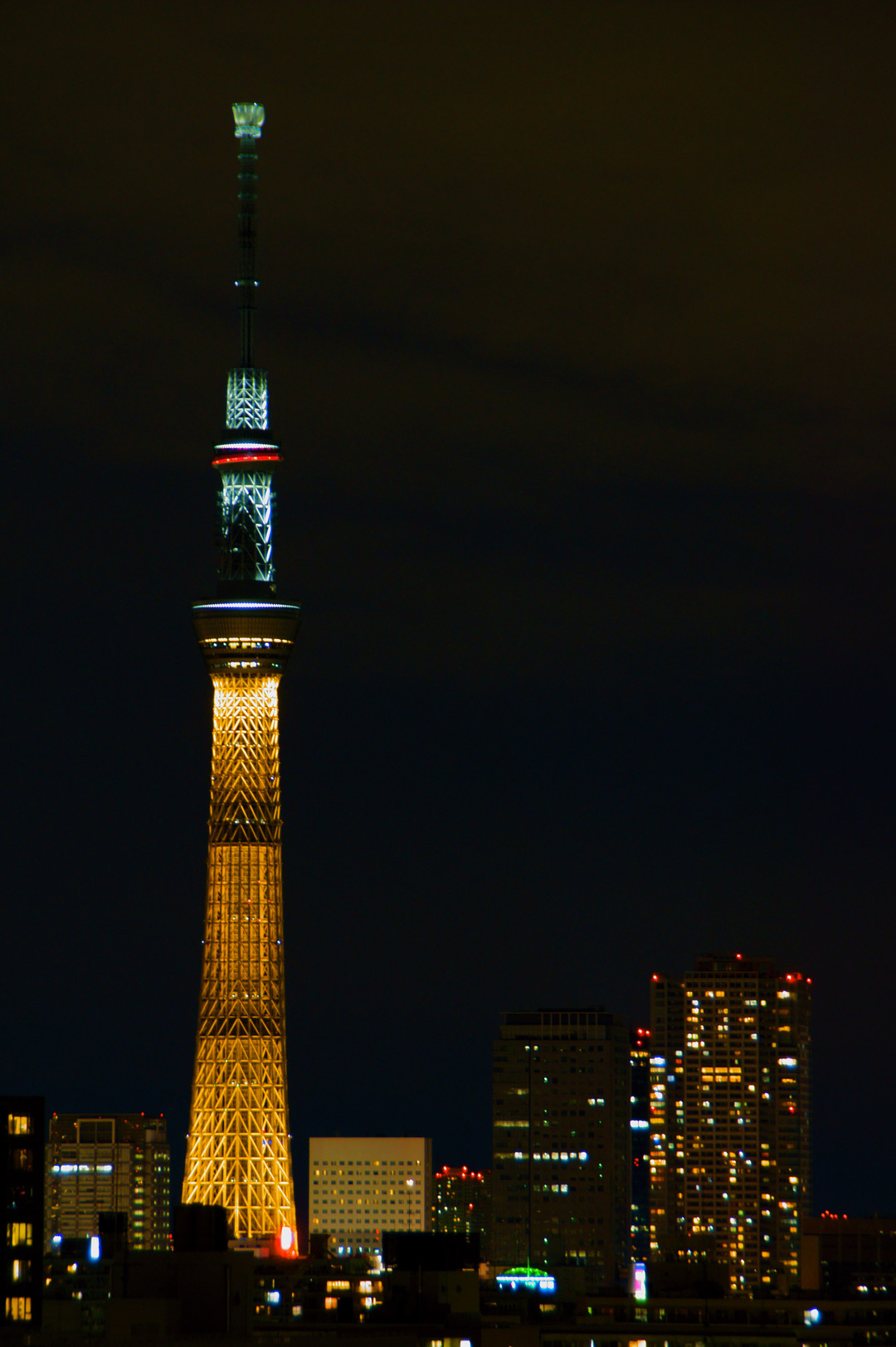 東京スカイツリーの祝・金メダル特別ライティングです。 彩度マックスまで上げてます。