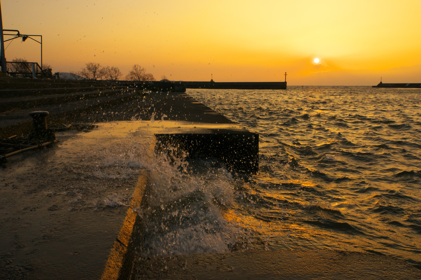 冬の琵琶湖の公園