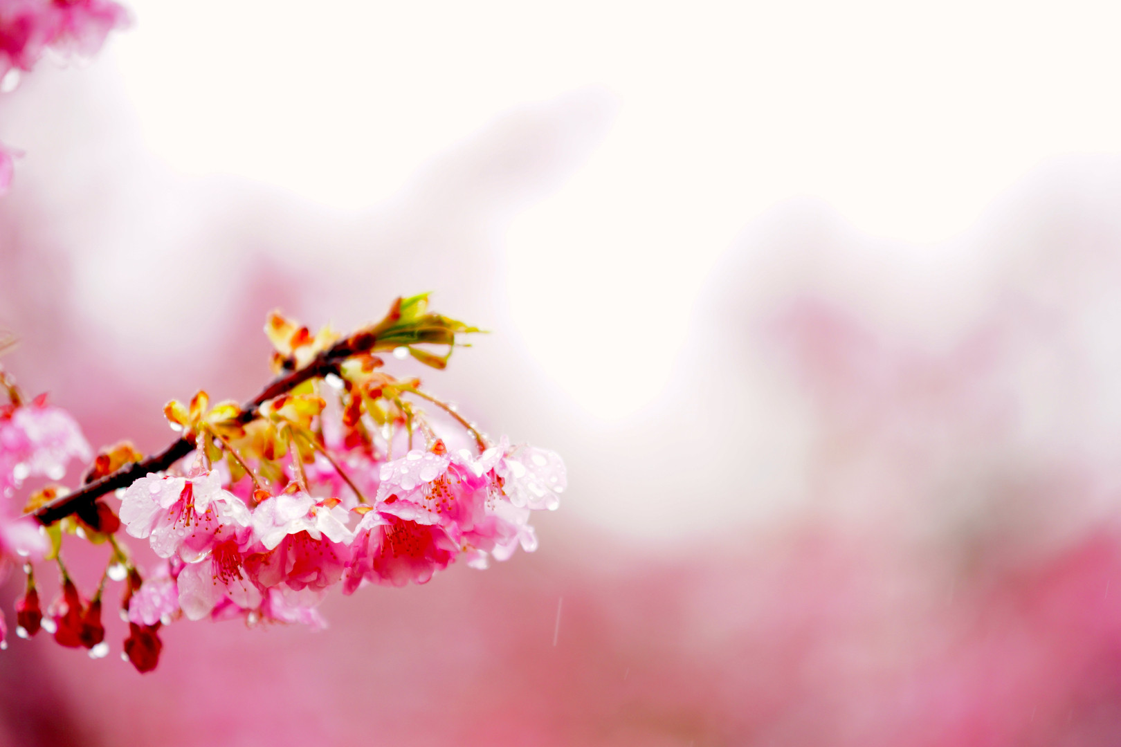 雨の中の河津桜です レタッチで色調整してしまいました あくまでイメージで(汗