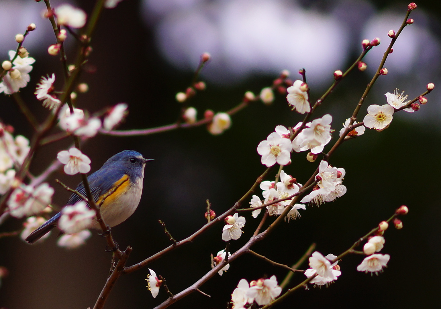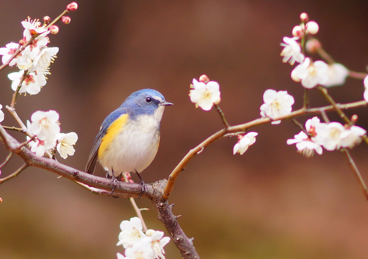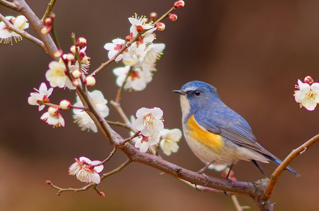 白梅の香りに包まれて・・・ルリビタキ