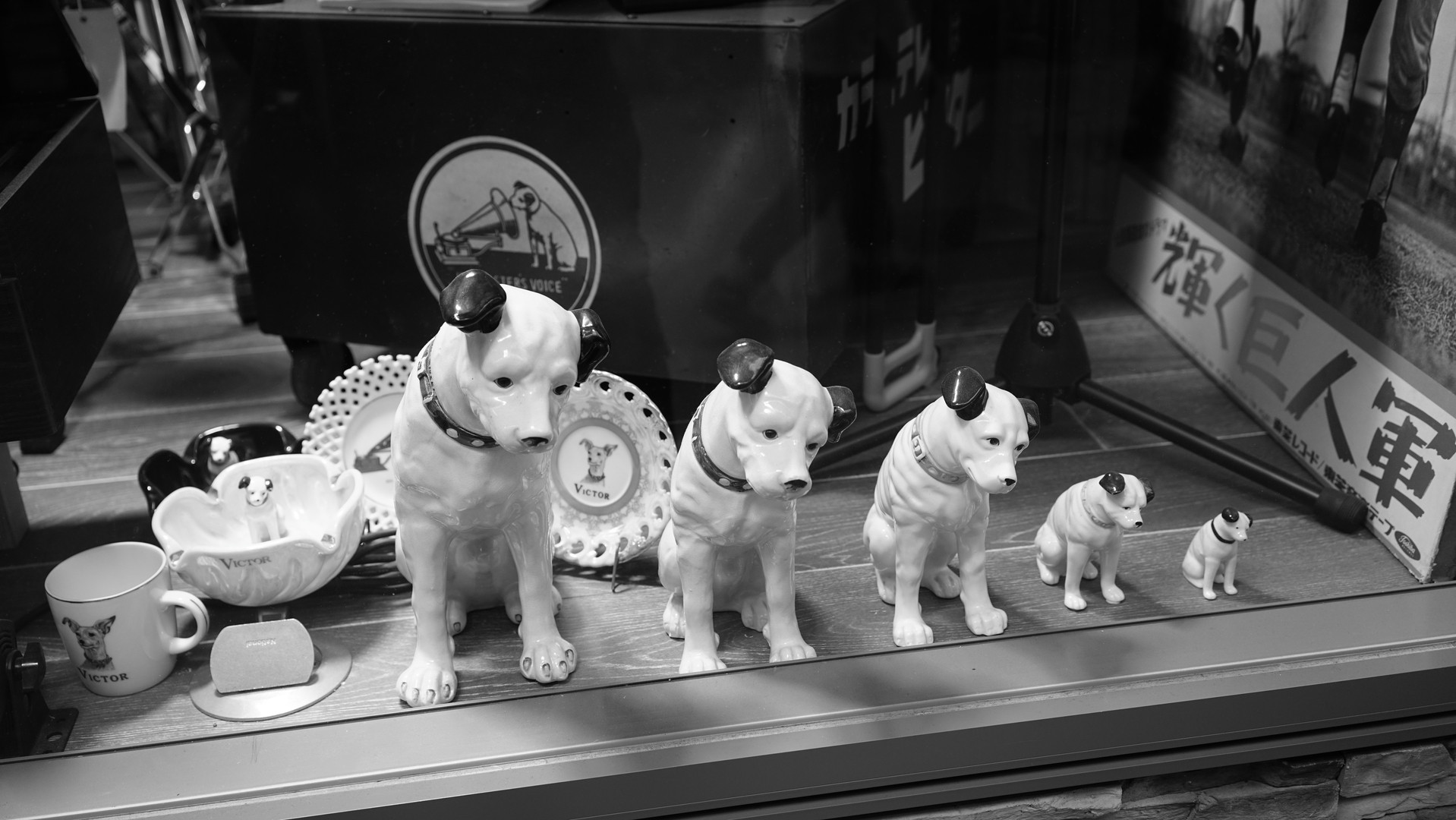 地方のお店のショーウィンドウに飾られていた懐かしいビクター犬
