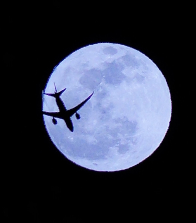 満月を撮影していたら偶然ジェット機が…。 2度とは撮れません(>-<*)