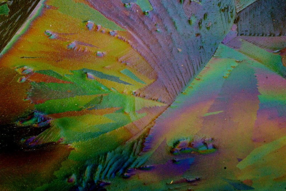 近隣公園の池に張る薄氷。 PLフィルターで覗く世界。