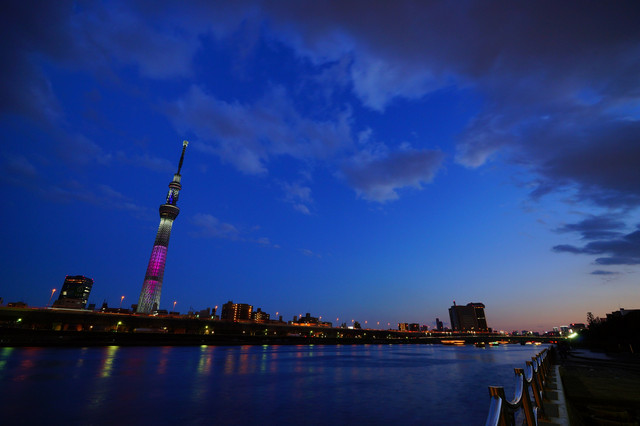 スカイツリー桜特別ライトアップ「舞」が点灯 って事もなく、「咲」点灯時に一時ピンクの 「舞」の様になる瞬間を撮影 開花宣言が待ち遠しい(#^.^#)