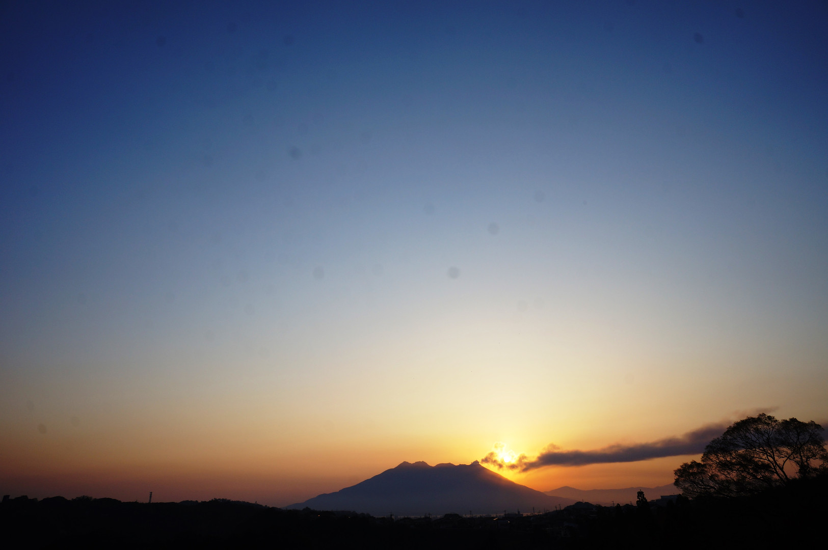 桜島の背後から現れた太陽。 今日も1日が始まる。