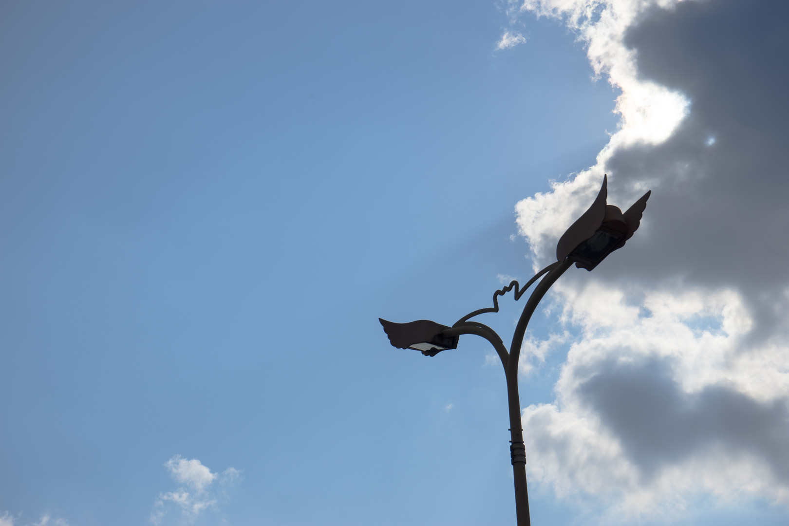 那覇空港へ向かう道でふと上を見上げるとこんな形の街頭を見つけました。