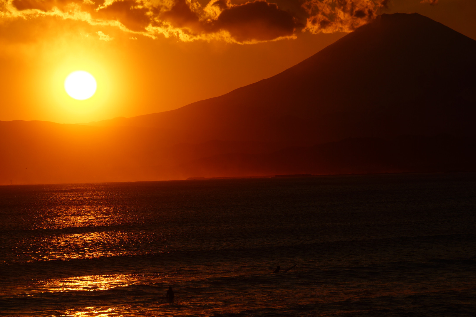 ありきたりですが、富士に沈む夕日@湘南