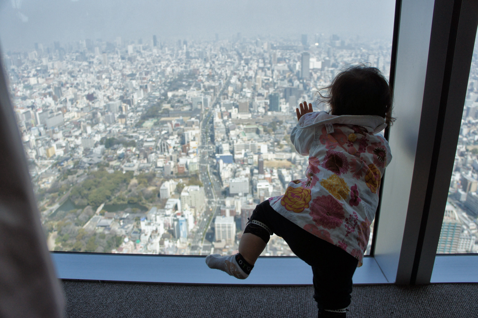 あべのハルカスに行ってきました。 娘のまたまた後ろ姿ですが、まちのミニチュアと一緒に撮ってみました。