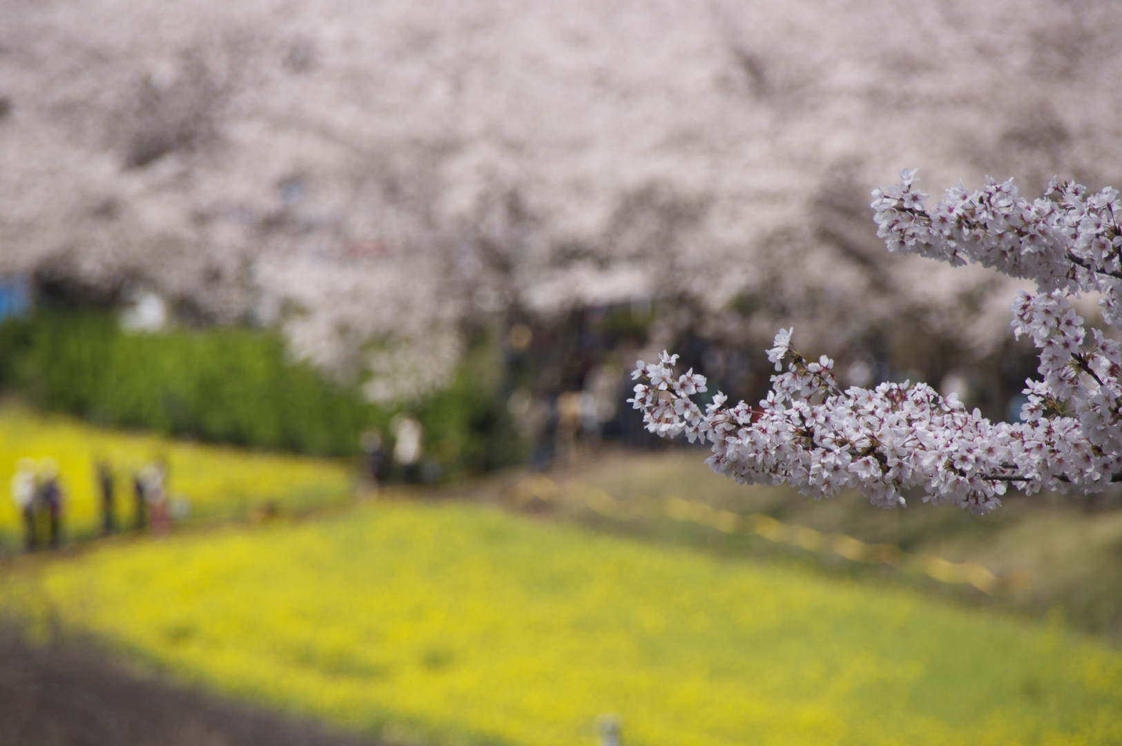 少し肌寒い日曜日、自宅近くの桜並木と菜の花畑の花が美しく綺麗に咲いていました。