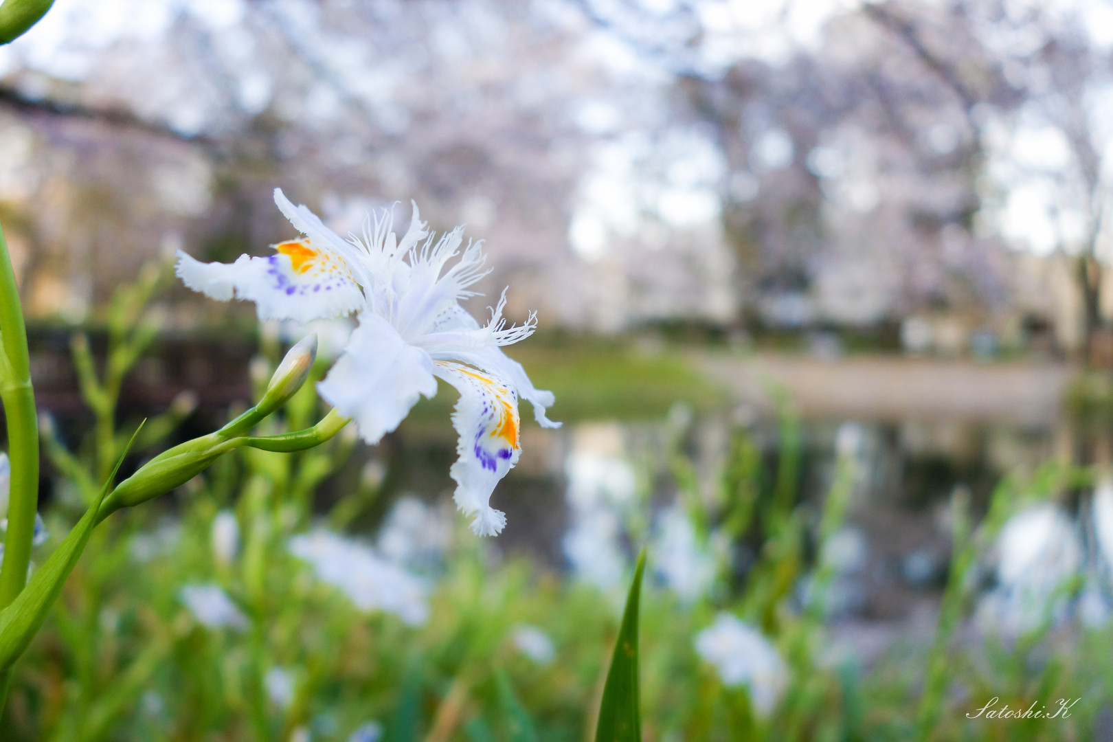 桜舞う空池