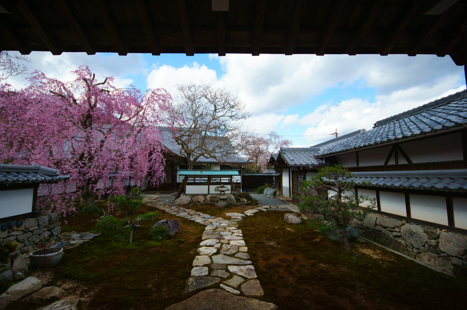 門からのぞくと桜が目につきました。