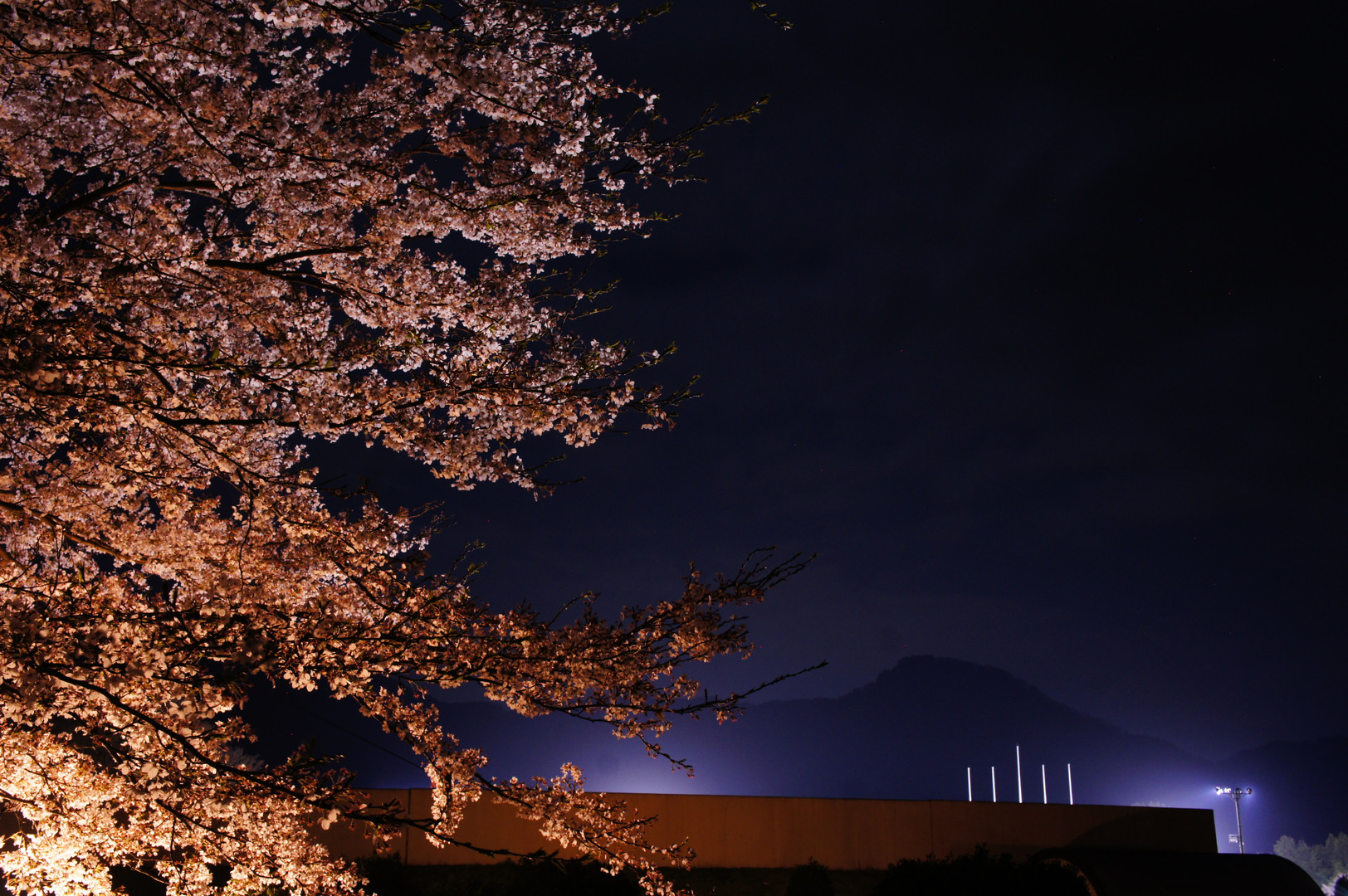 夜桜と月