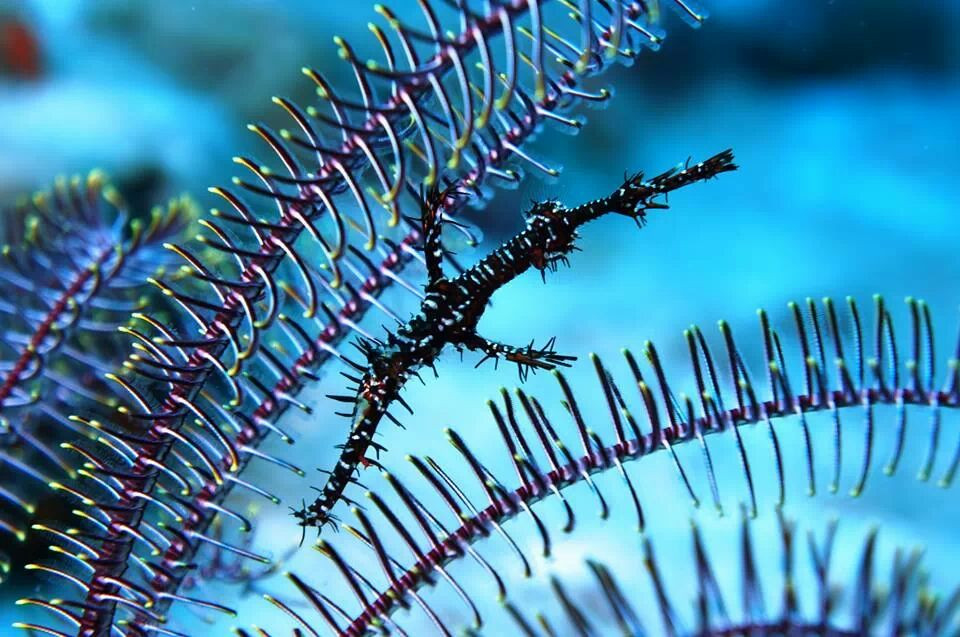 ニシキフウライウオという魚です。 背景のブルーがお気に入りです。 昨年の夏に撮影したものです。