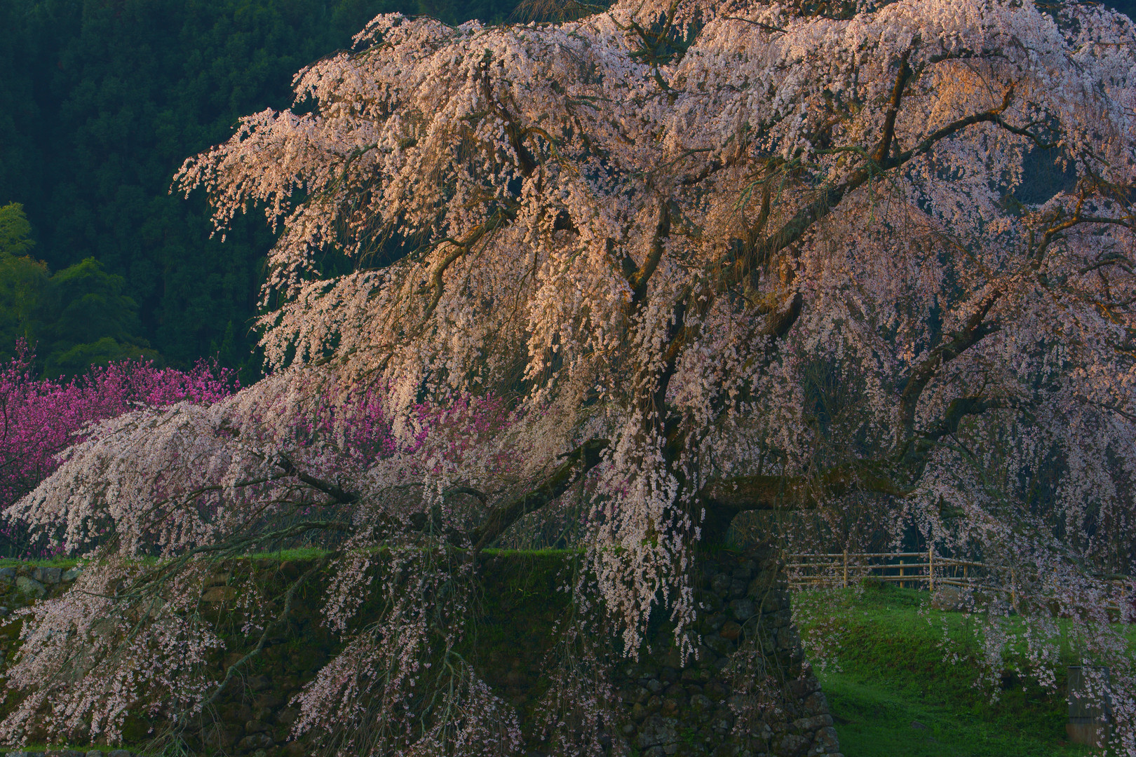 奈良県大宇陀町の「又兵衛桜」です。 朝光に染まって輝く姿が美しくて感動的でした。