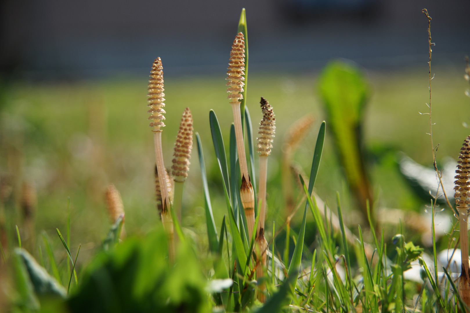 庭のつくしが朝日をあびて光っていました。