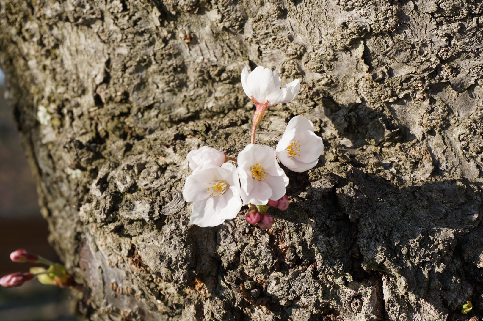 幹から出ている桜が咲いていました。枝のつぼみも大きくなっているので来週には開花しそうです。