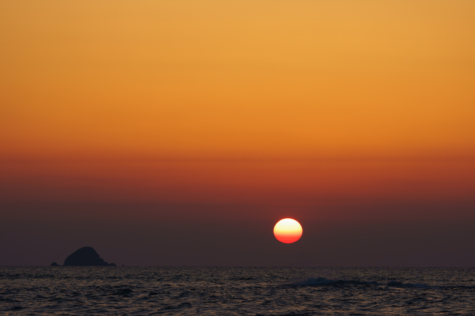 帰り道。日本海へ沈む夕日に見とれてパチリ。