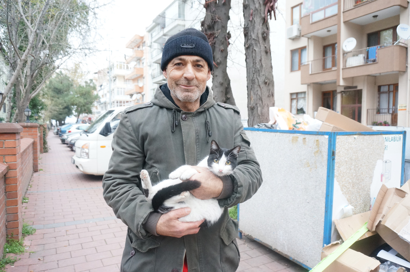 公園で猫ハウスにいる野良猫の世話をしているおじさん。とても優しい人でした。