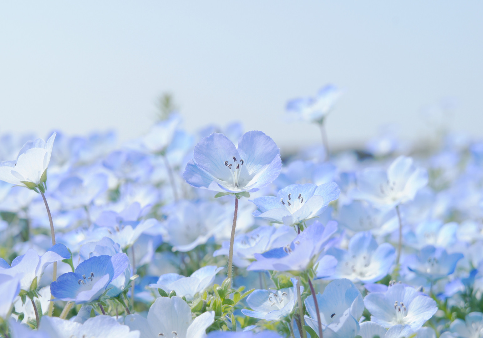 みんなの為に歌うから。 この空の、ずーっとずーっと向こうまで届くように…☆ 空と同じ色をして一面に広がって咲いたネモフィラたち。 その姿はまるで、空から舞い降りてきた天使たちのようでした。 念願のネモフィラ畑、行けました。^^