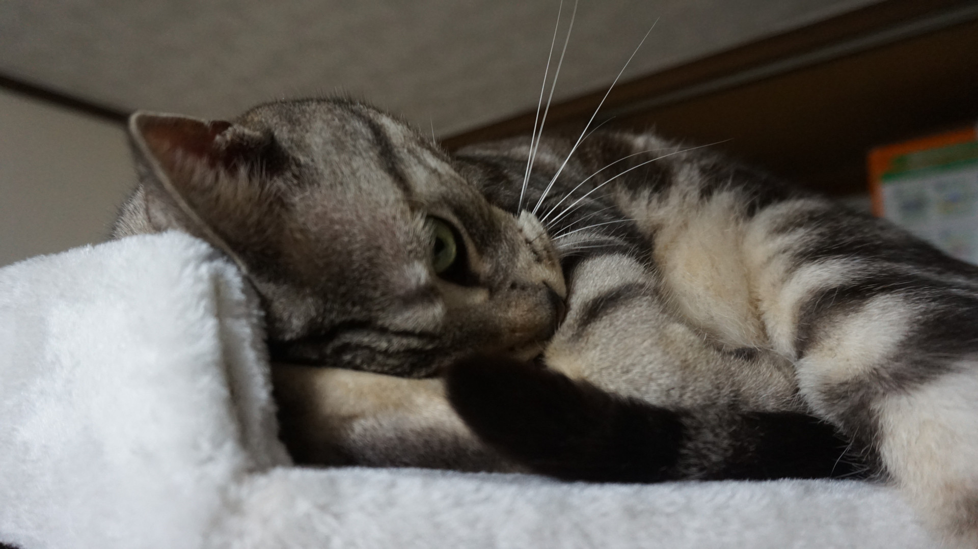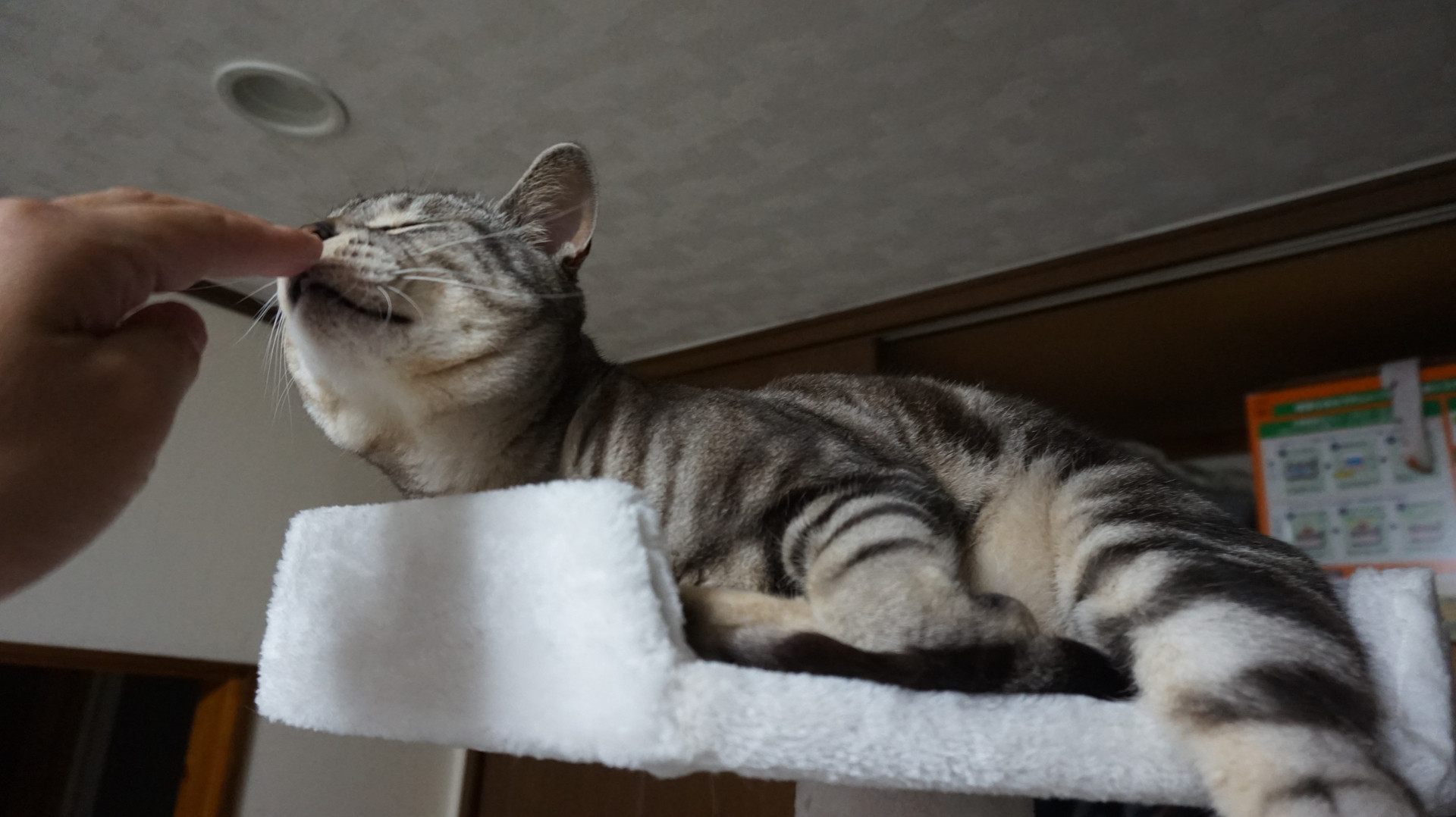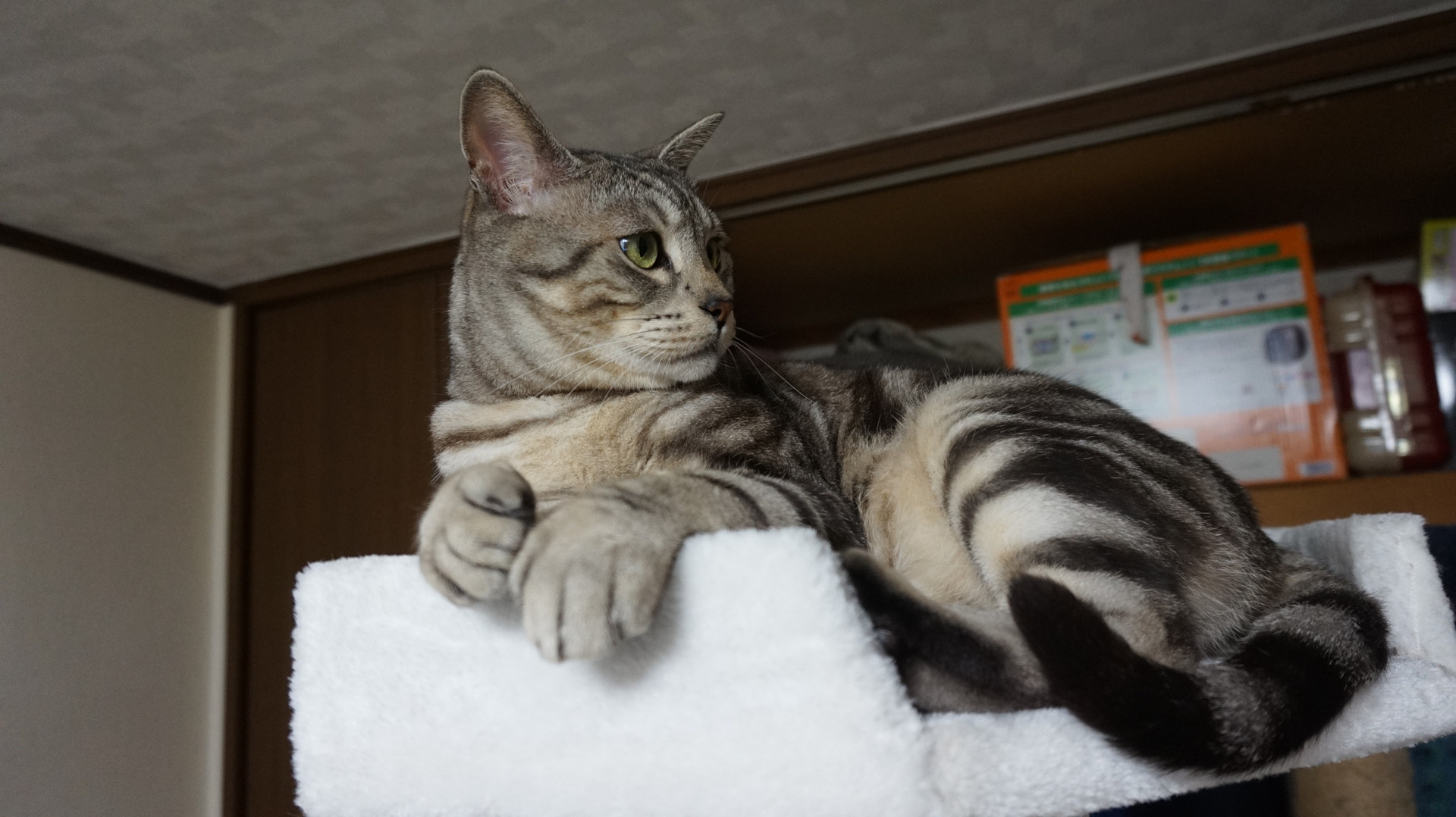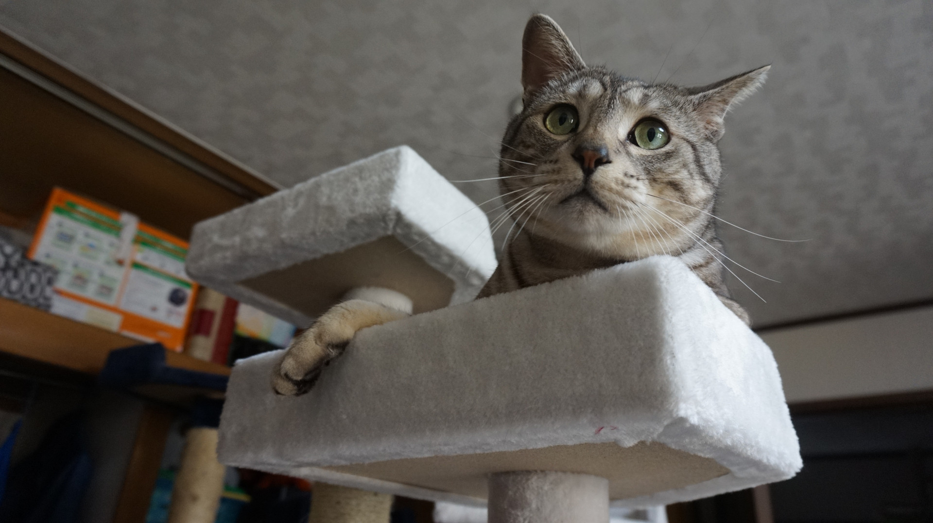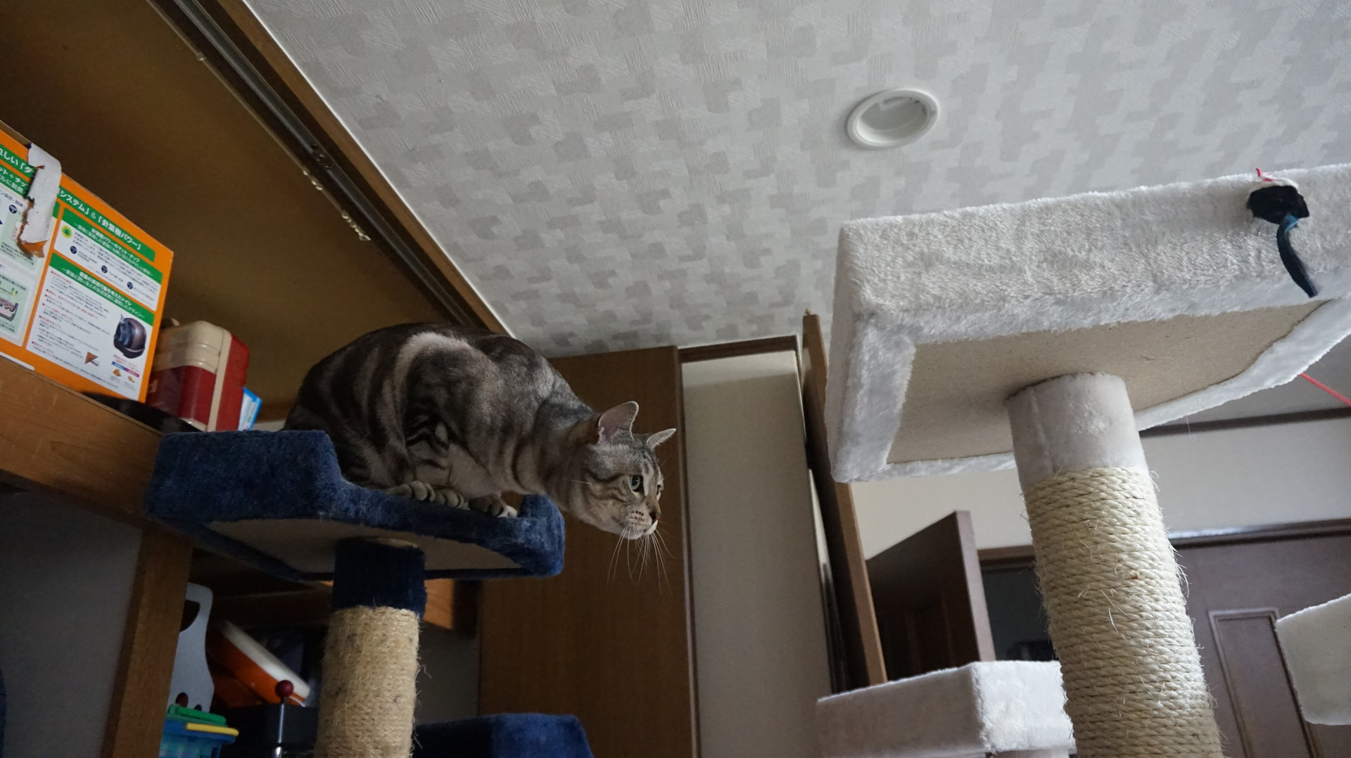 古い青キャットツリーの隣に新しい白キャットツリーと並べて遊びました♪ 心なしかいつもより嬉しそう。