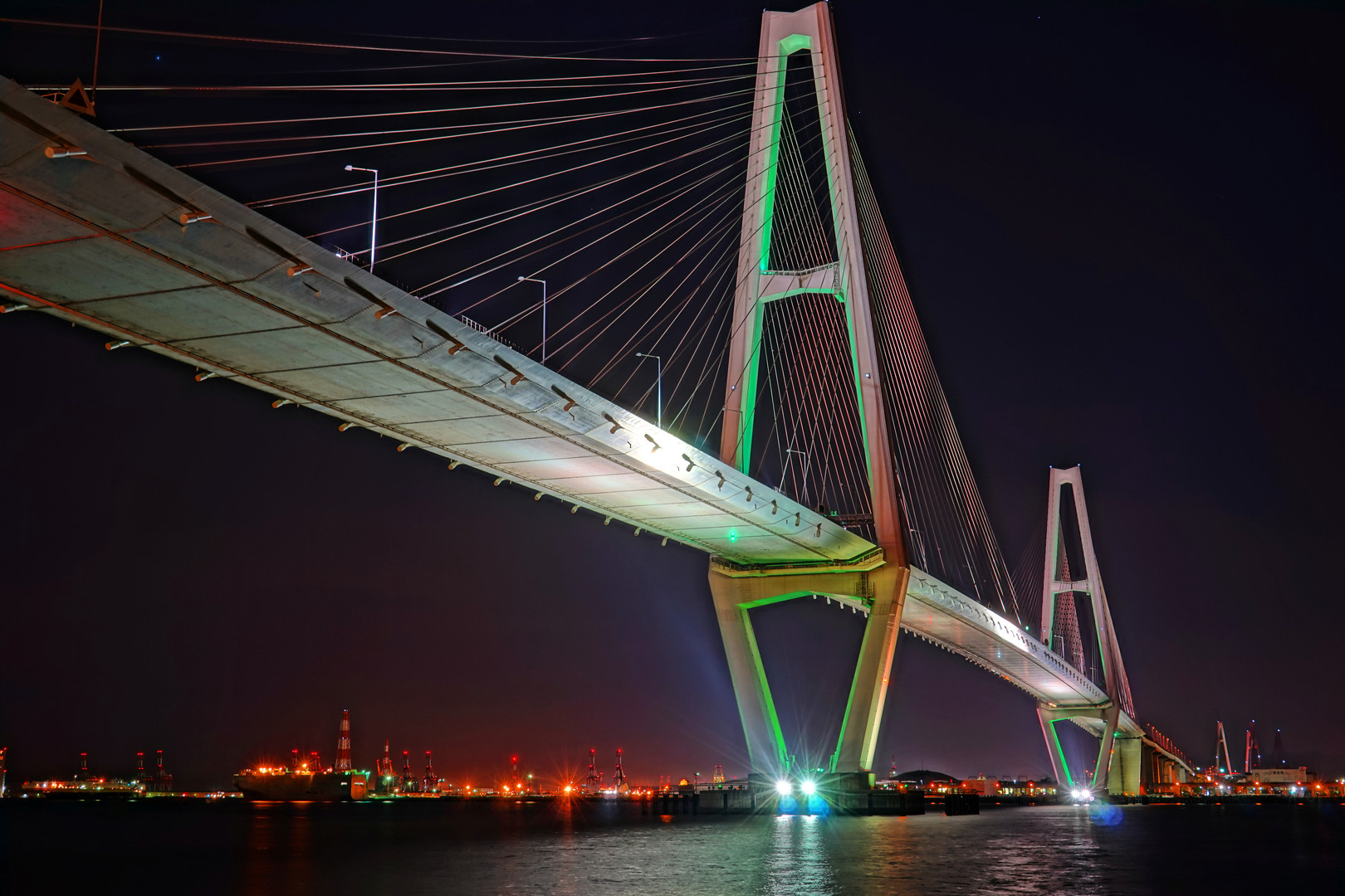 定番の名港中大橋です。 釣り人だらけでした。