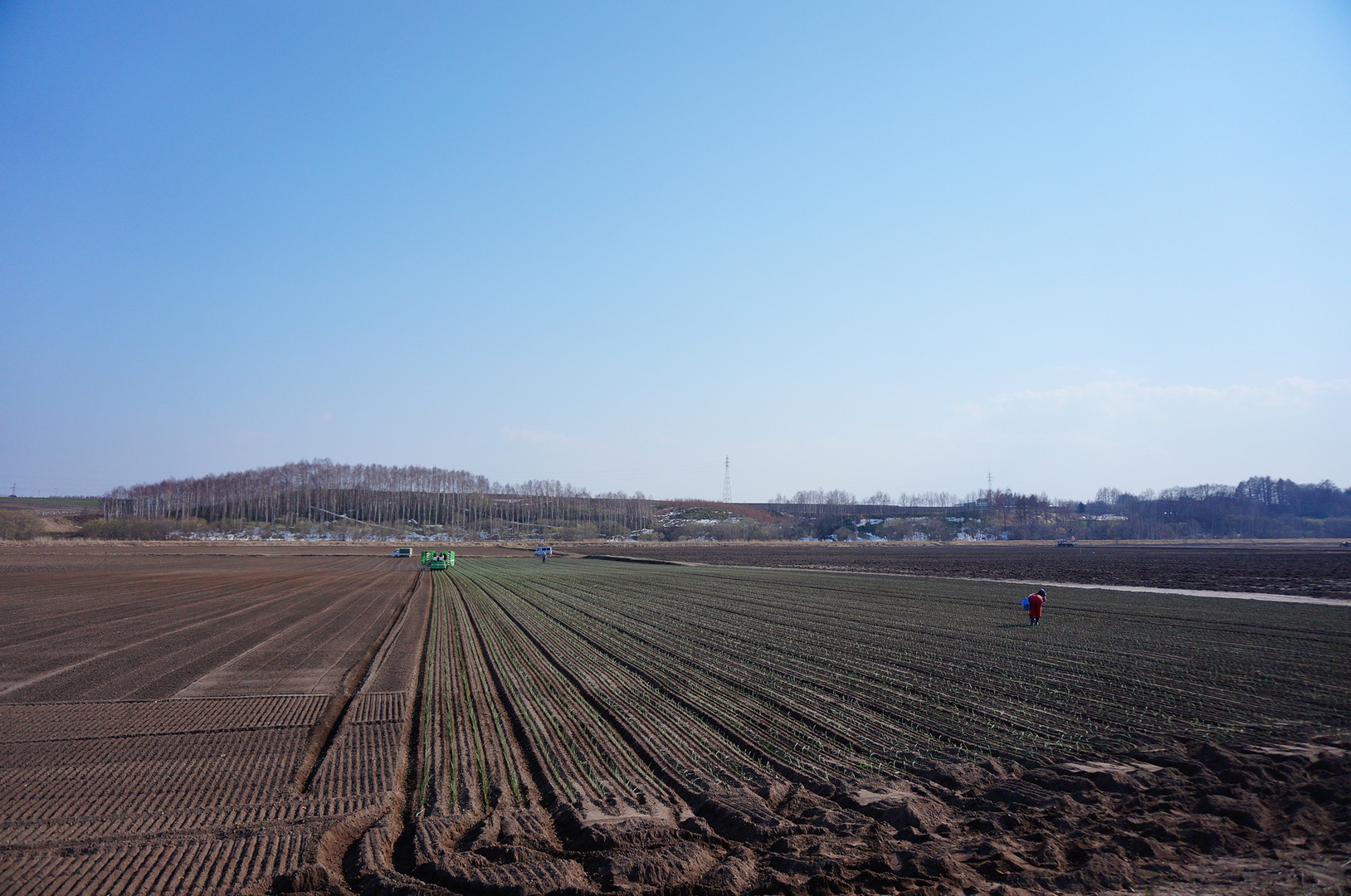 北海道訓子府町。 定植真っ最中の玉ねぎ畑です。 広大な畑の真ん中で、おばあちゃんが植え損なった苗をひとつひとつ補植していました。 出来秋が楽しみです。