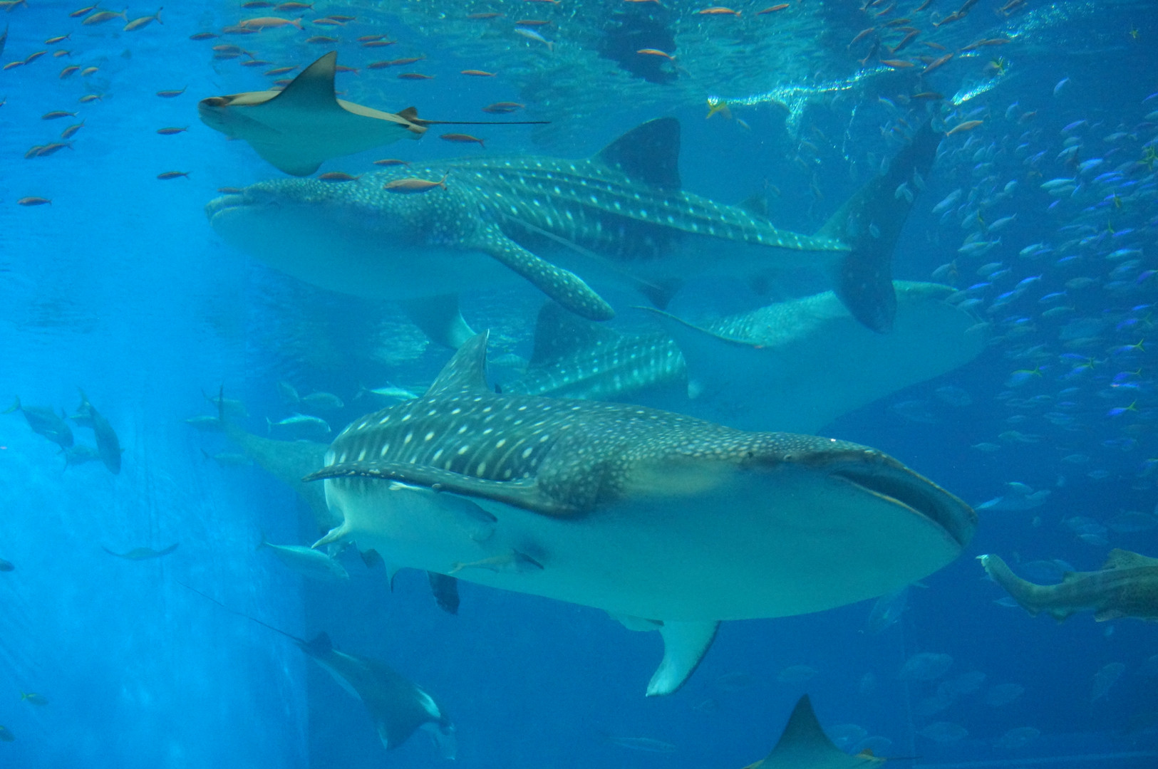 美ら海水族館でのジンベイザメの3ショットです。