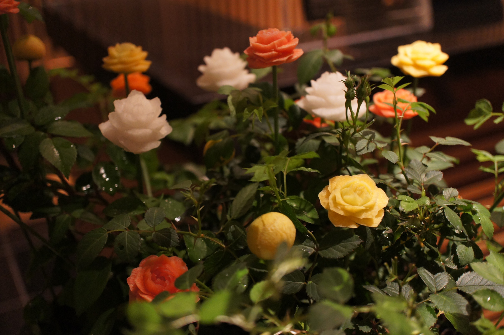 ピントがずれててわかりずらいかもしれませんが、この可憐な薔薇はなんと! なんと!!大根なんです!!!