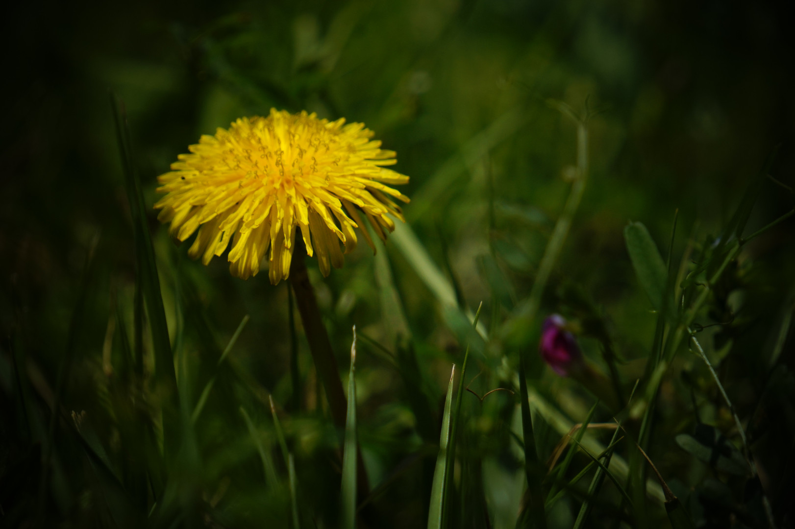 タンポポを強調するために、トイカメラのエフェクトを使用して低い位置から撮ってみました。