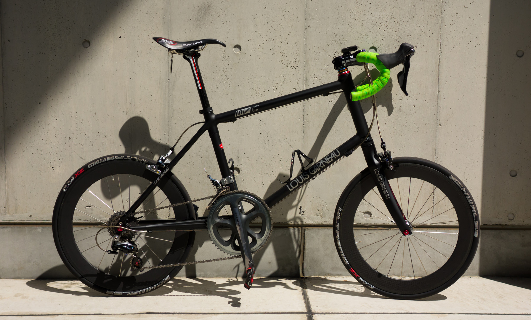 自分がレースで使用しているミニベロの写真。 綺麗な状態のうちに記念撮影! 格好良い取り方がわからないので、日の丸構図で..。