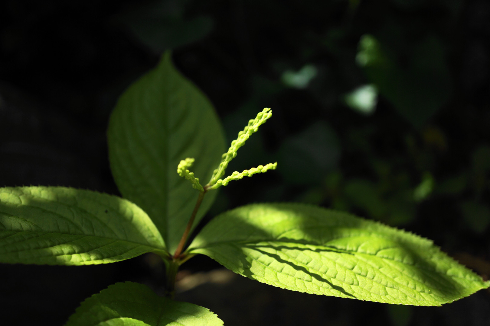 朝陽を受けて細い線の様な蕾が主張し始めました。