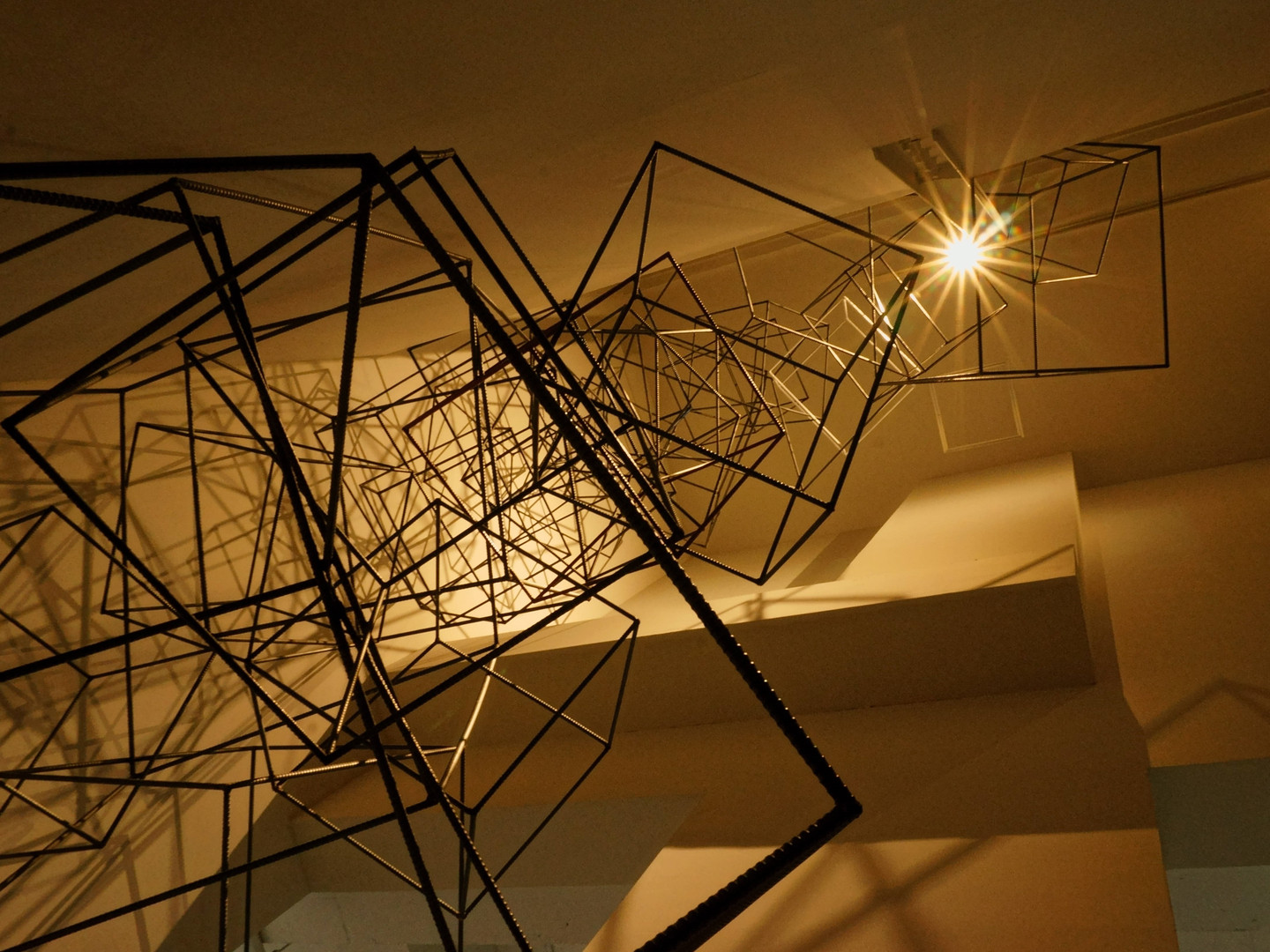 フラフラ街を散策してたらたまたま目に飛び込んできた鉄筋でできたキューブのオブジェ。 オブジェを下から撮ってみました。 ライトアップによってできた影がカッコいい。