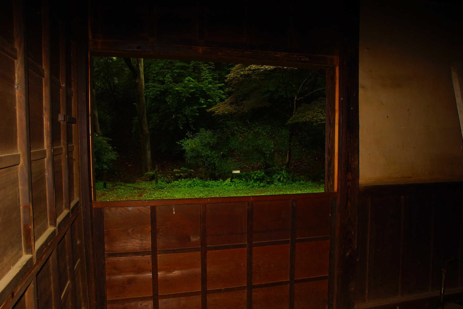 内臓ストロボを使い薬師池公園の民家の中から民家の内装と外の緑を撮ってみましたが、これでよかったのかなと少し迷ってます。
