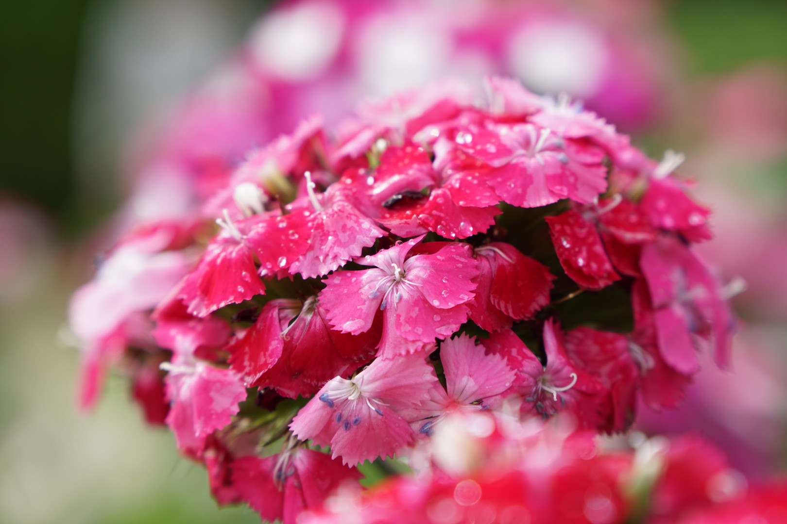 ダイアンサス(ナデシコ科)です。植物園の方が水やりをしてはりました。暑い日でしたので、気持ちよさそうです。