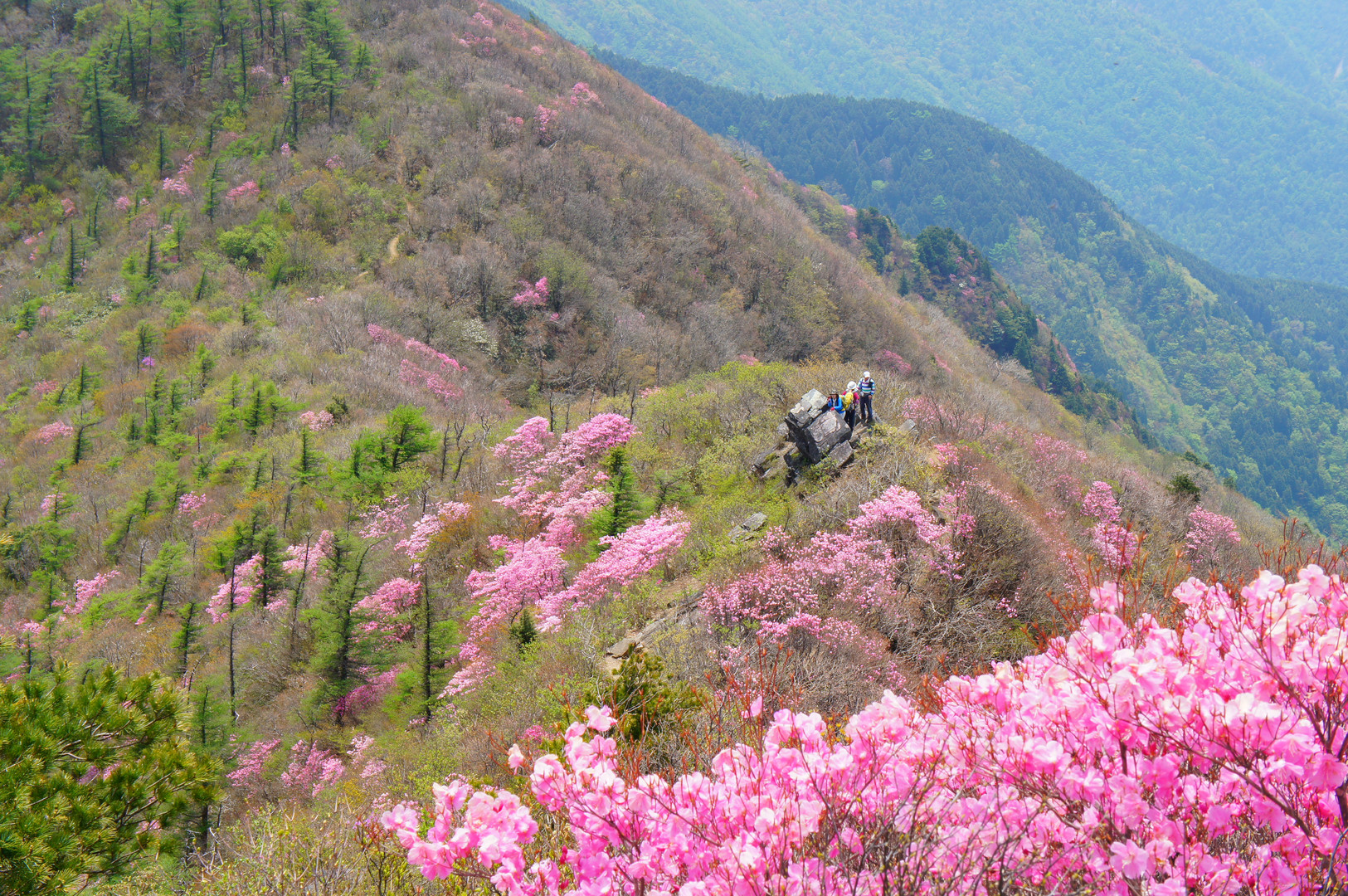 愛媛県の『西赤石山』に行ってきました。 5月はツツジが非常に有名な山で、さすがに登山客でいっぱいでした。 山肌がピンクに染まって、すごく美しかったです!
