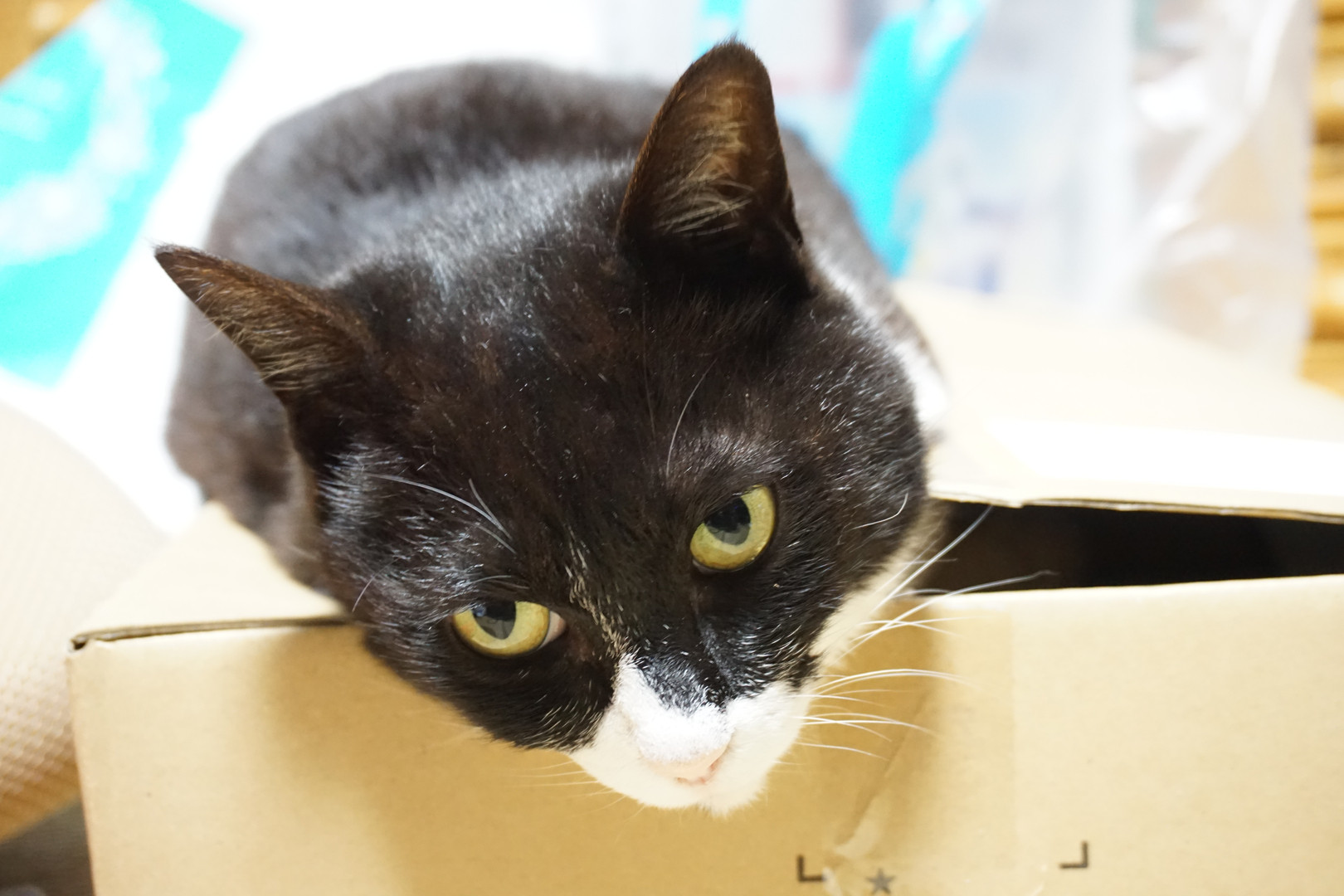 ダンボールの上で横になってます