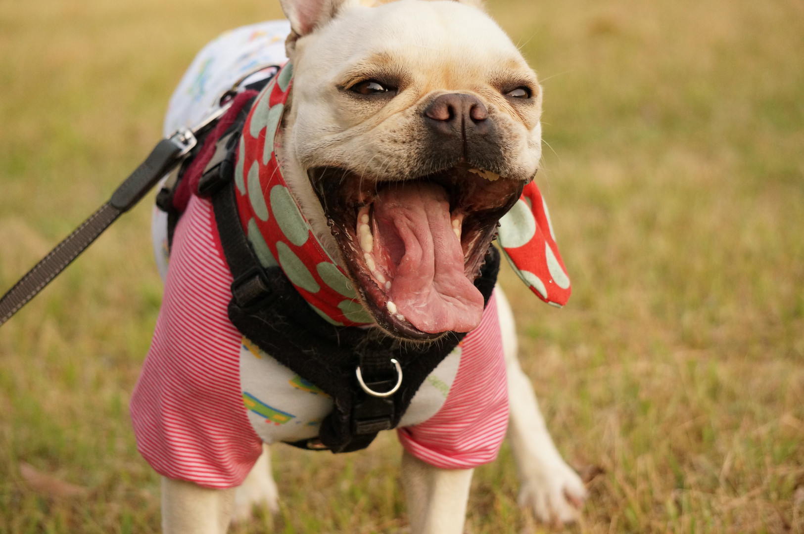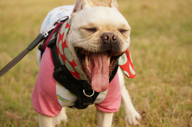 お散歩中になぜか大あくび