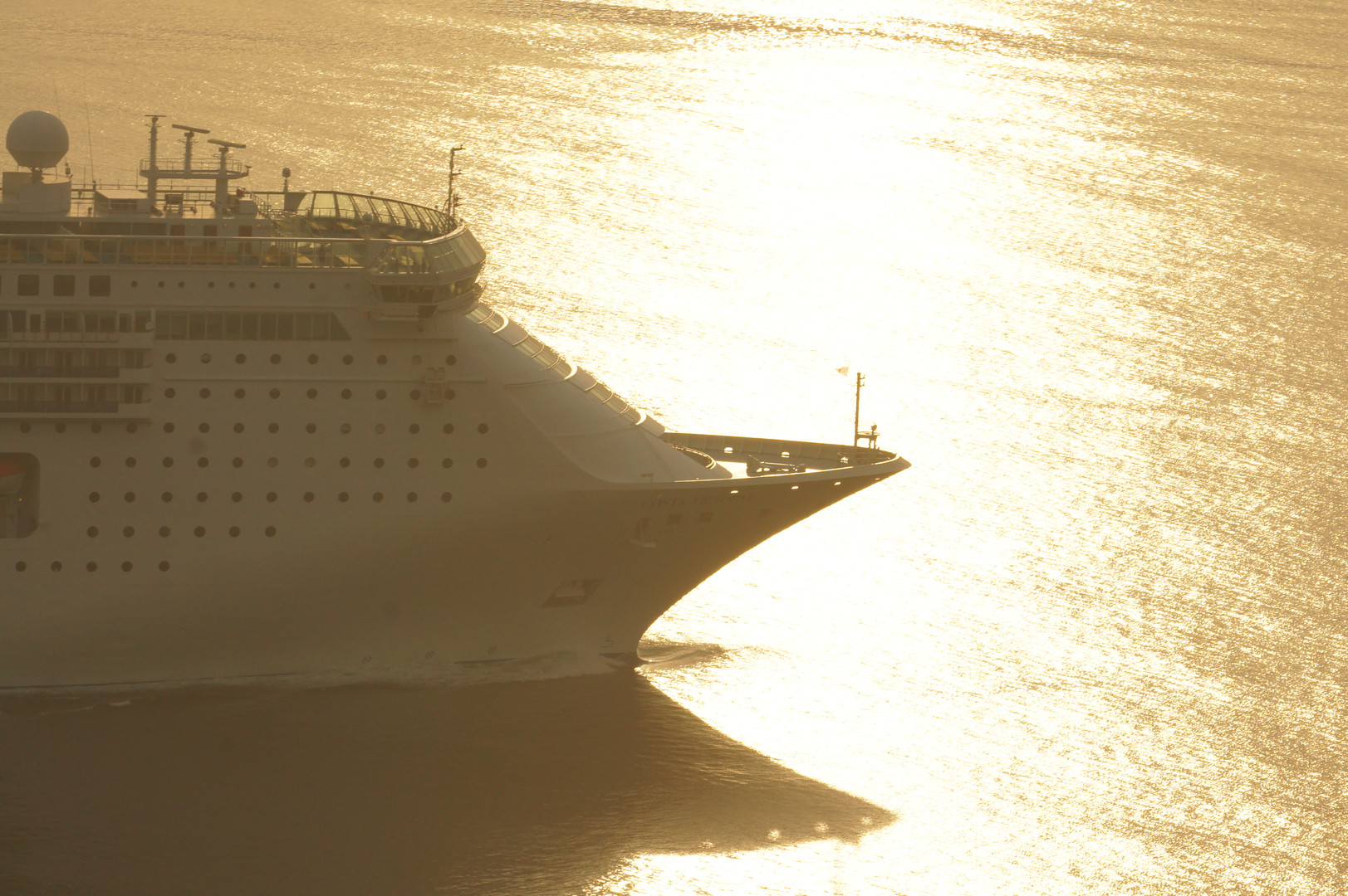 夕日の中を「コスタ・ビクトリア」が出港しました。 あいにくの黄砂でネムたい写真しか撮れず・・・(泣 「船」のタグをお願いします。