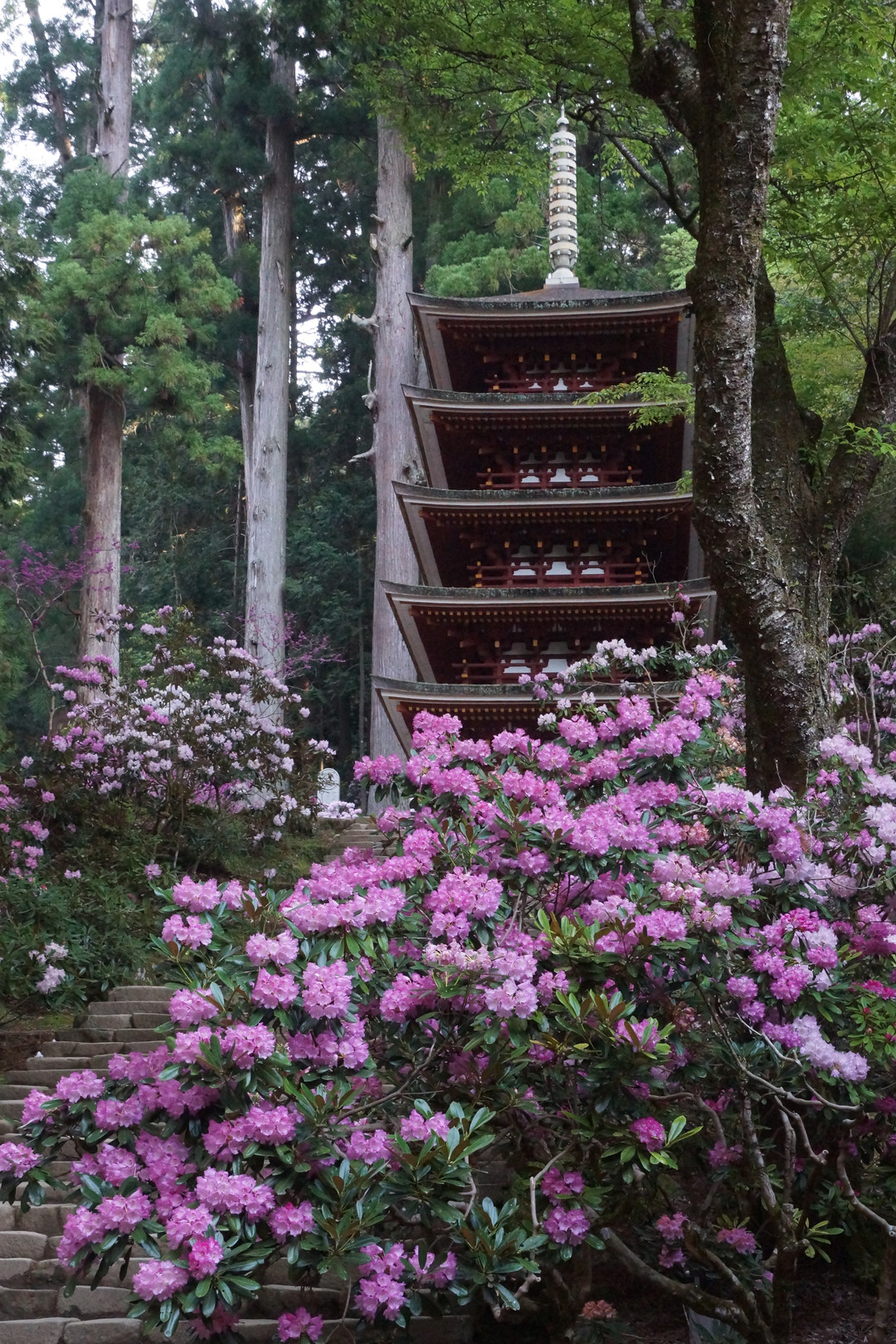 室生寺の五重塔と石楠花-1より右の寄り撮影した。
