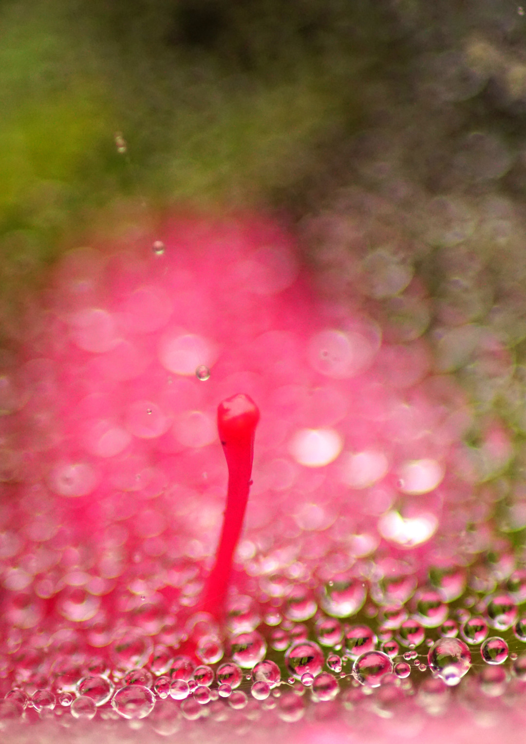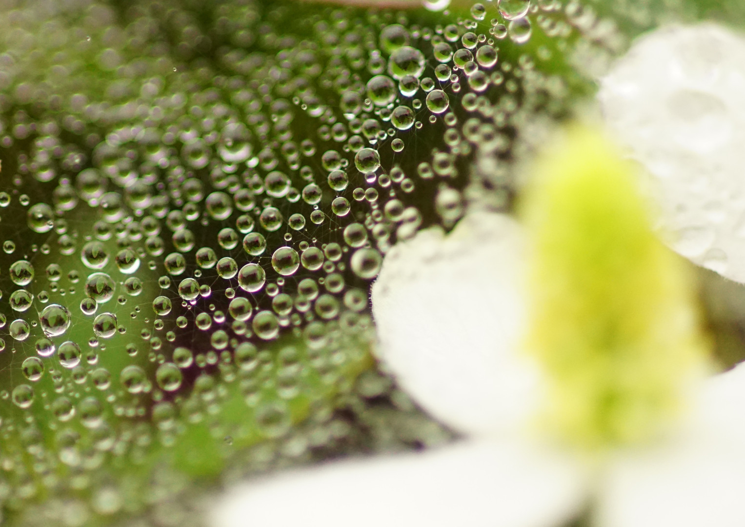 蜘蛛の巣についた水滴を撮ってみました。