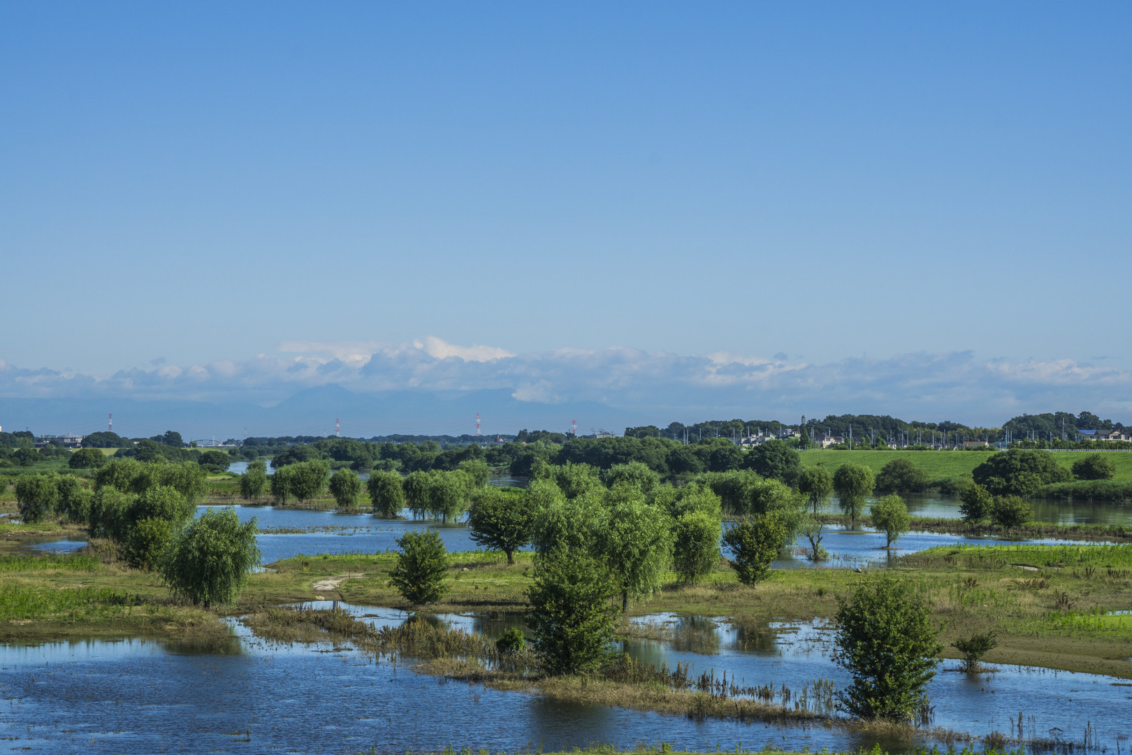 先日の大雨で、河川敷が湿原風に。